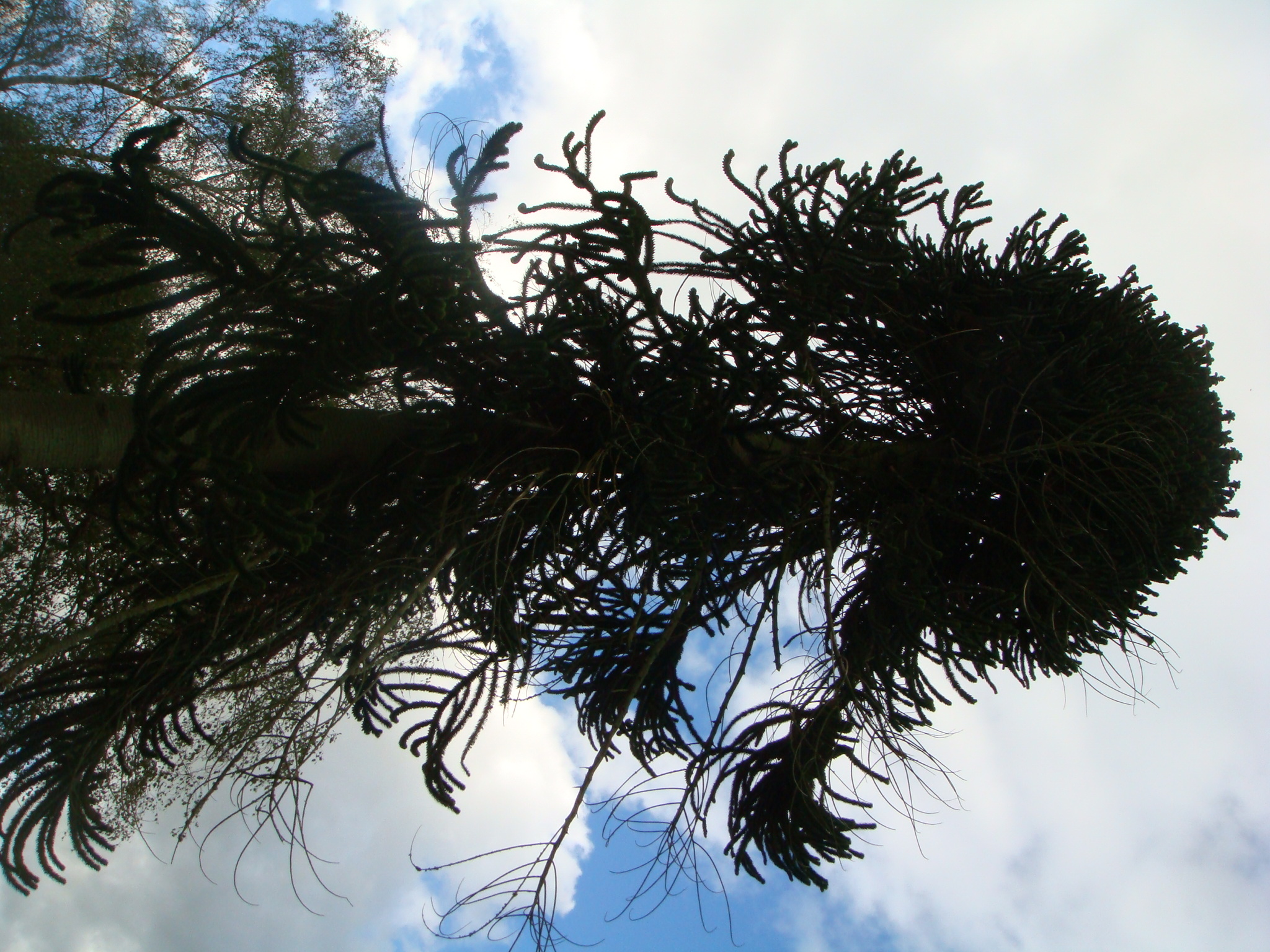 The origin of the popular English name Monkey-puzzle derives from its early cultivation in Britain in about 1850, when the species was still very rare in gardens and not widely known. The owner of a young specimen in Cornwall was showing it to a group of friends, and one made the remark “It would puzzle a monkey to climb that”; as the species had no existing popular name, first ‘monkey-puzzler’, then ‘monkey-puzzle’ stuck.
