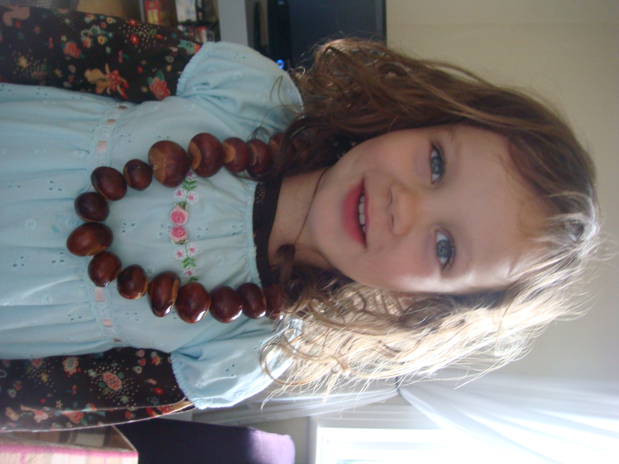Although we did have a few traditional games of conkers most of the ones we collected went into the creation of this chunky necklace…a great “hit”.