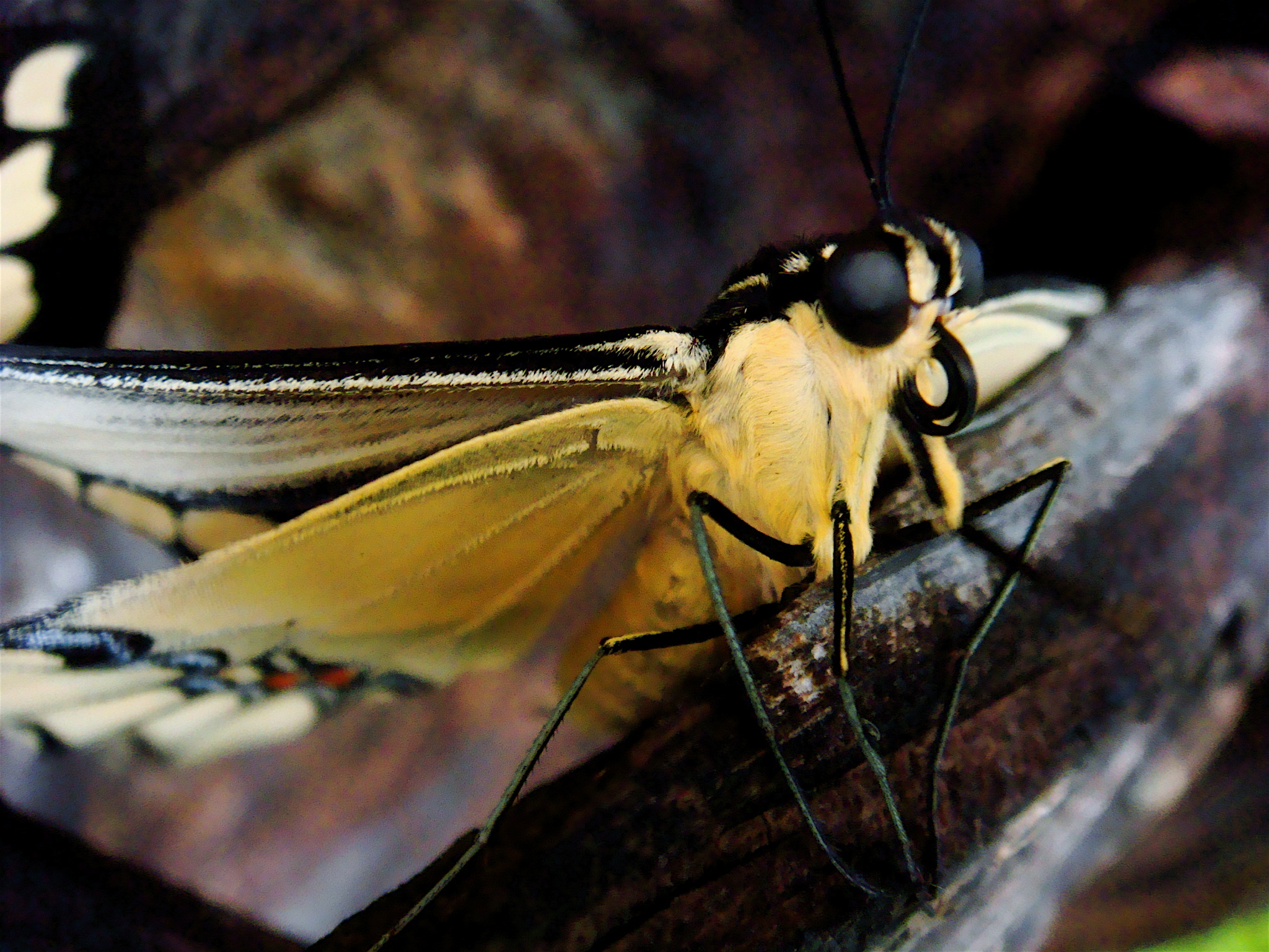 The rain had beaten down this swallowtail butterfly to the ground, along with some Mexican Bush Sage. When I approached, as if on cue, the bird moved a wing ever so feebly, like a surrender flag. It was a tragic scene.