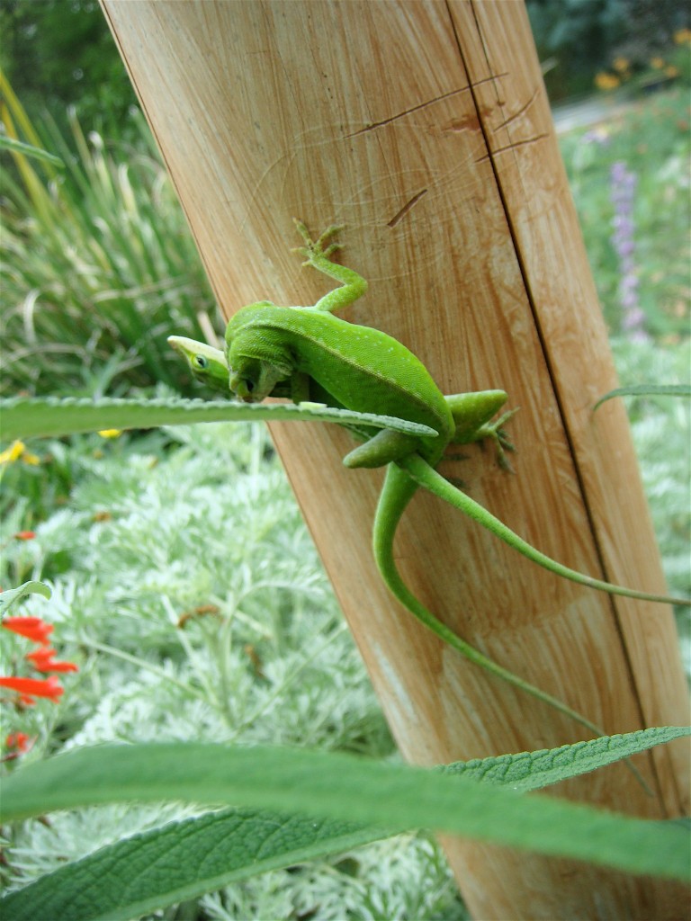 Love the new color on your house and am insanely jealous that you have those lovely lime green creatures frisking about in your yard. Wish you’d come dig up MY bamboo patch. Its only about 25′ x 25’… good exercise..