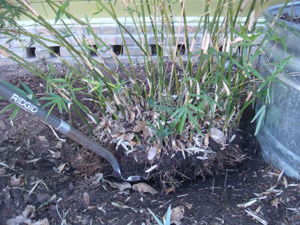 It is a really cool rock though and it looks like the shape of Texas from the right angle, with one eye shut, standing on your head, etc, etc. Today I was overhauling this area. I knew that the Mexican weeping bamboo was not going to go down, or out of the ground for that matter, without a major shovel fight, it was quite established after all…