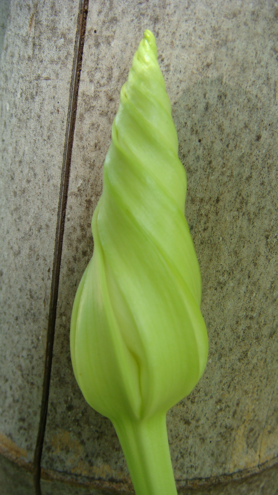 This is the twisted ice-cream cone of the moon-flower, just before blooming.