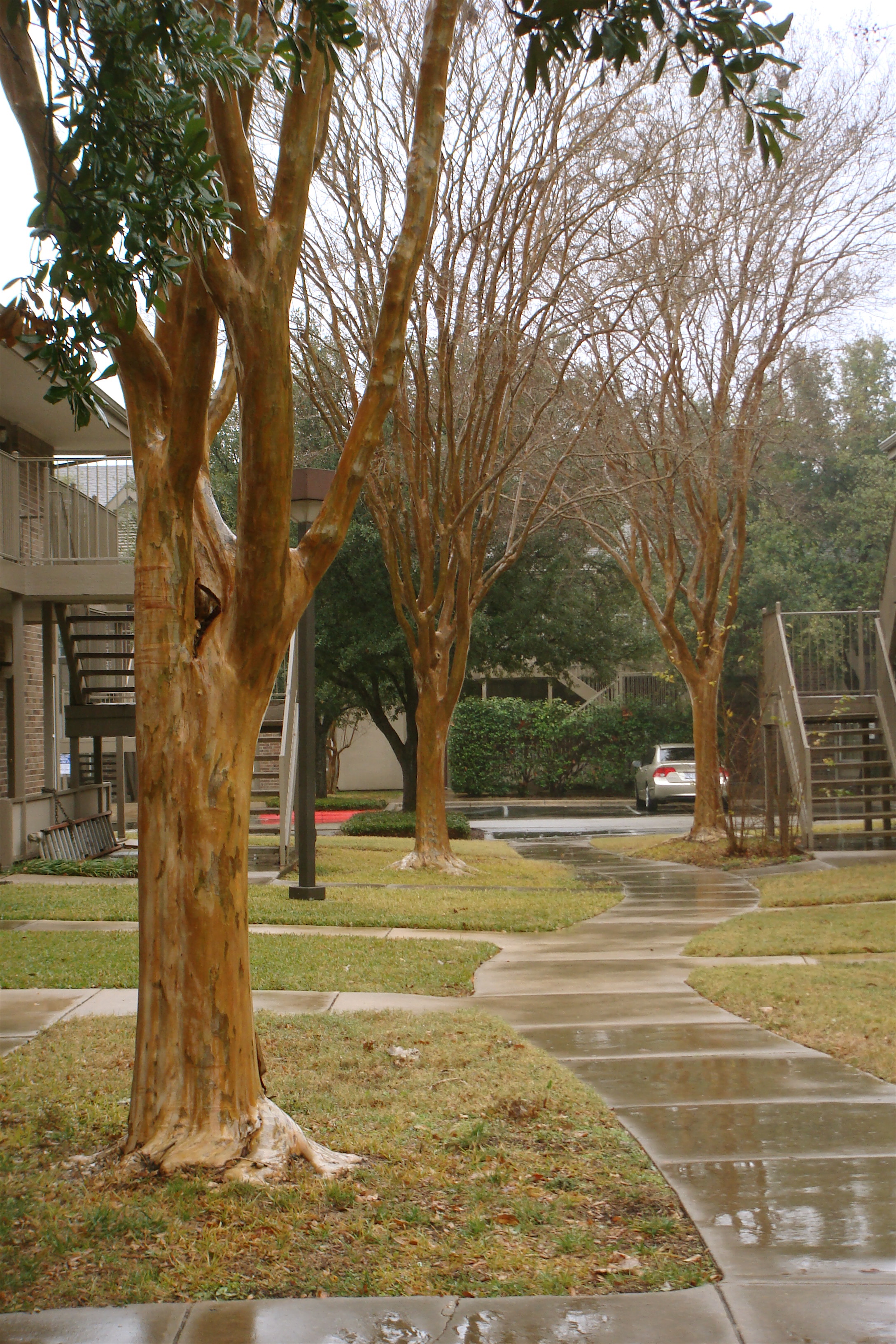 These wet Crepe Myrtle trunks look like they have been varnished,