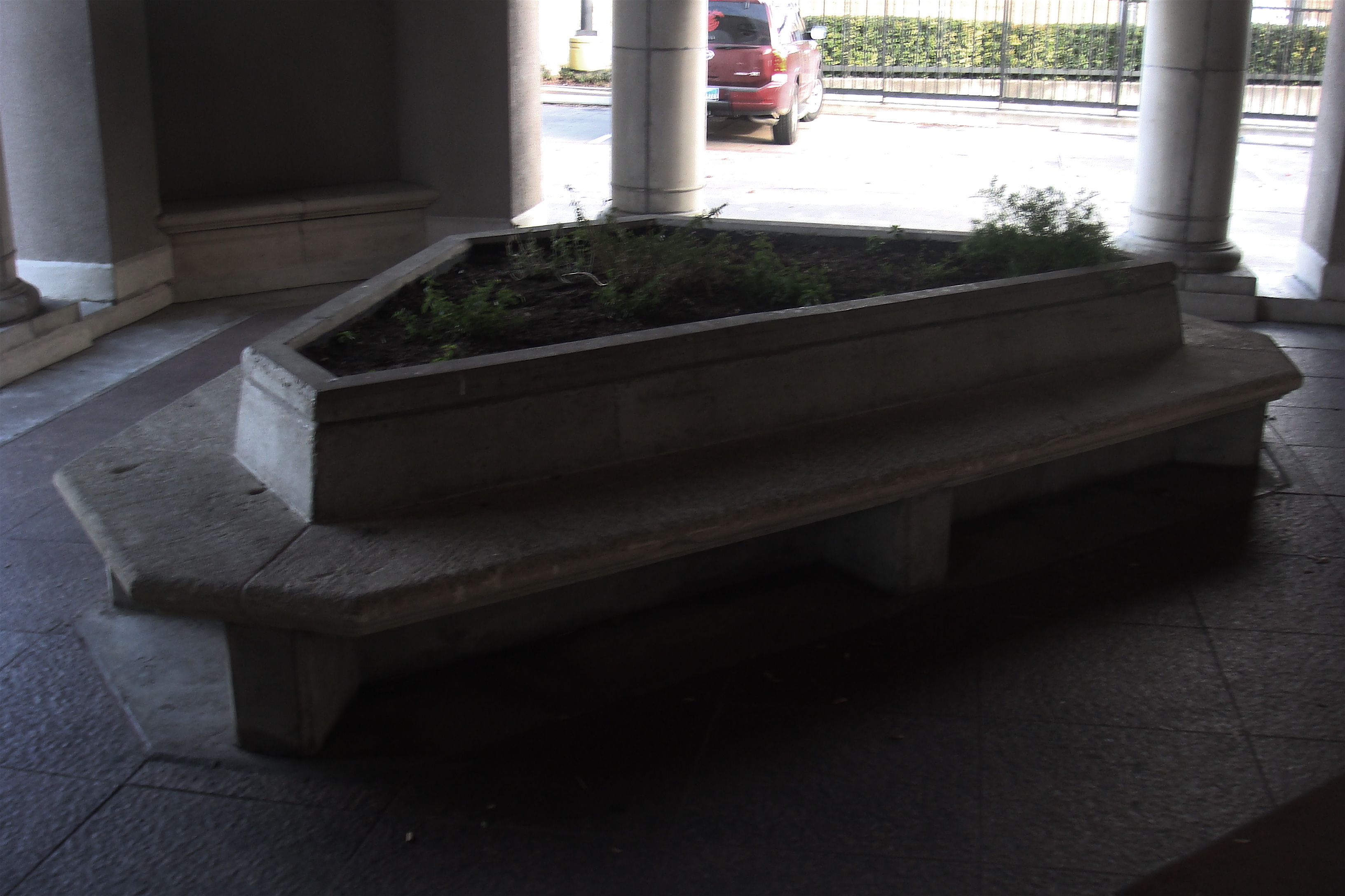 …nope, there it still was, in all it’s “Bela Lugosi” glory, long dark shadows crept up the surrounding walls as I walked toward it. I couldn’t help but subtly lean over the concrete edge to see what I could see. I did notice that there had been some significant “shuffling” of plants since my last visitation, the shards of broken terracotta pots had actually been REMOVED! Eeek Eeek Eeek!