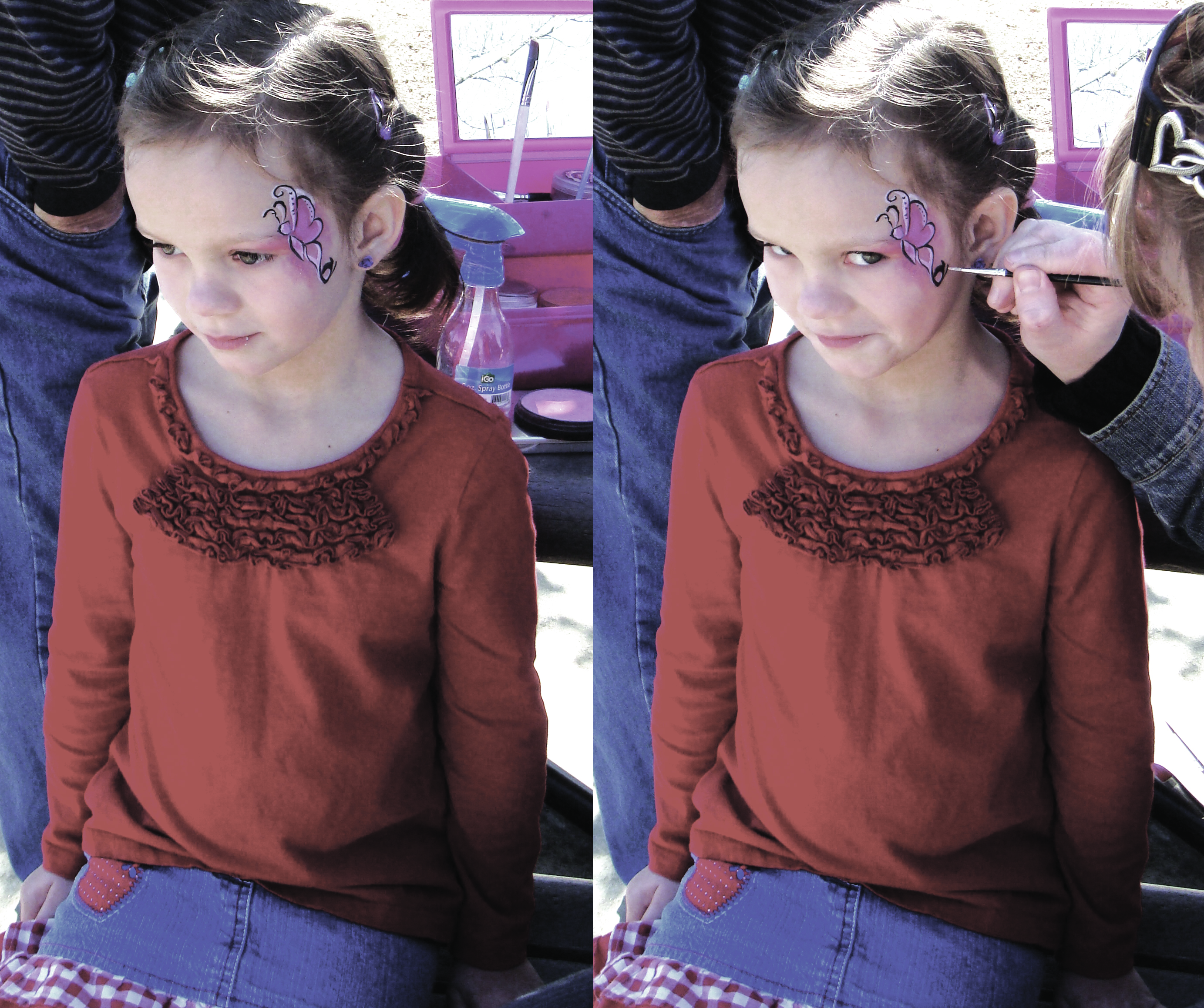 Womanly guiles indeed…she loves getting her face painted, it totally relaxes her, this is her “stop bugging me and go away with your camera immediately” expression.