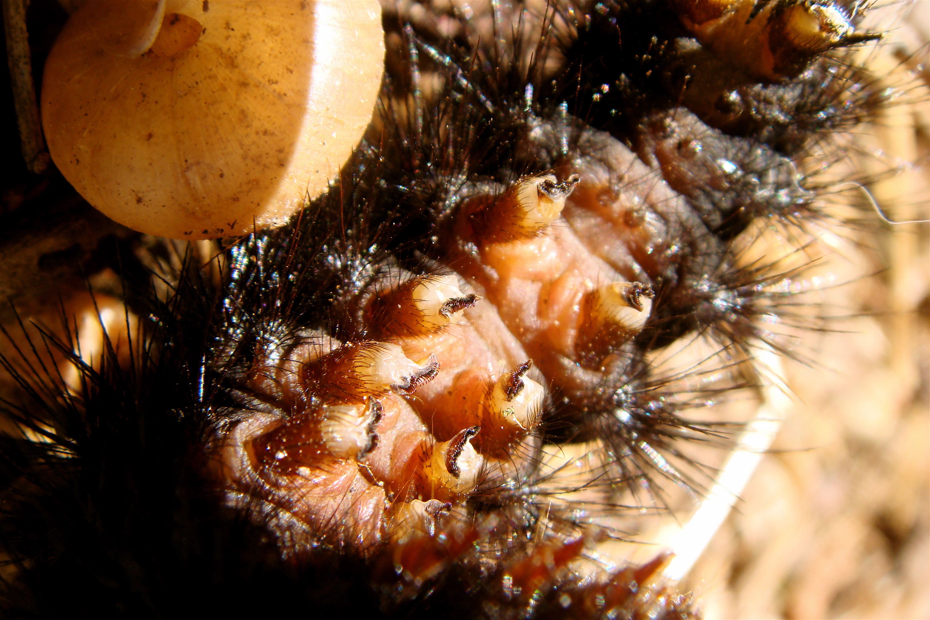 before it submissively rolled into it’s customary protective posture, predominately displaying it’s brightly colored bands. Woolly bear or fuzzy bear caterpillars are often found in the fall and winter in Texas after they have left their food-plants in search of a dark and sheltered spot where they can hibernate as larvae for the winter, usually under a deep layer of leaves. When spring kicks in, these caterpillars will become active, feeding then fashioning cocoons out of silk and body hairs…