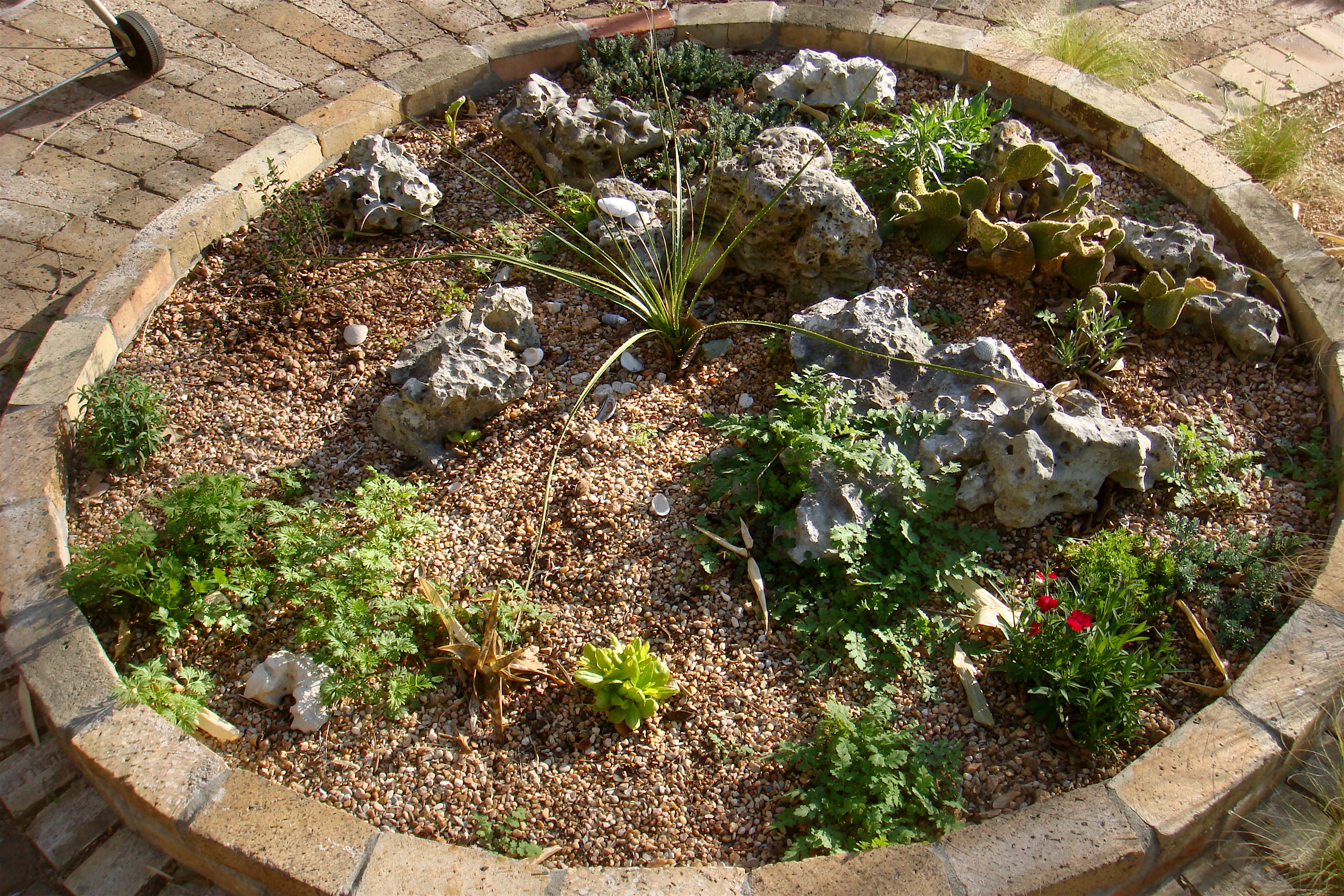 even this tiny sotol in my circular bed seems to finally moving into it’s gangling adolescent phase. All manner of plants are popping up in here, some known, some volunteers and even some mysteries waiting to be solved.