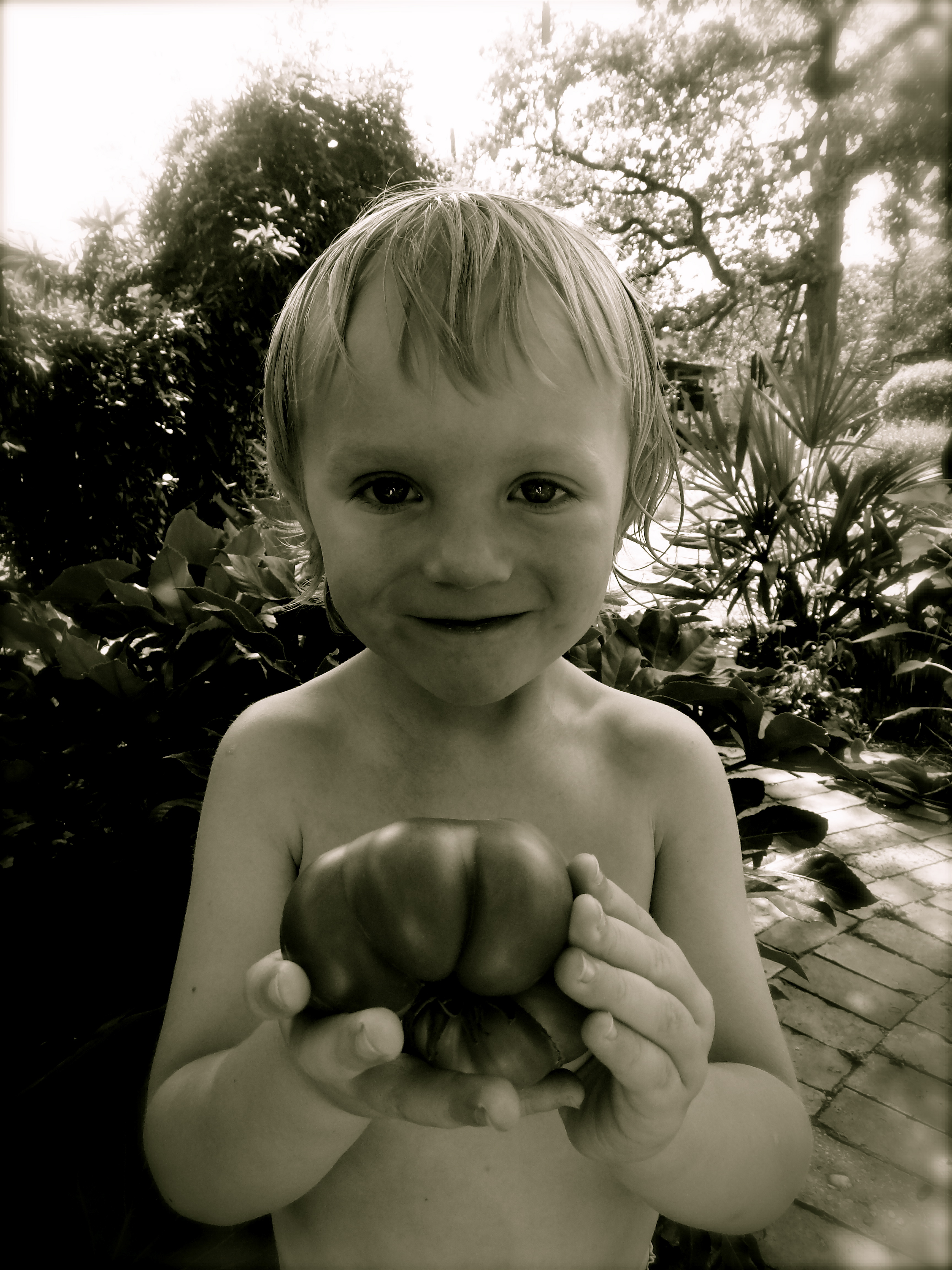 I wasted no time trying out my new implements, the first heirloom tomato of the year seemed like fair game. While my head was buried deep inside my tomato plants I had the distinct impression that I was being watched.