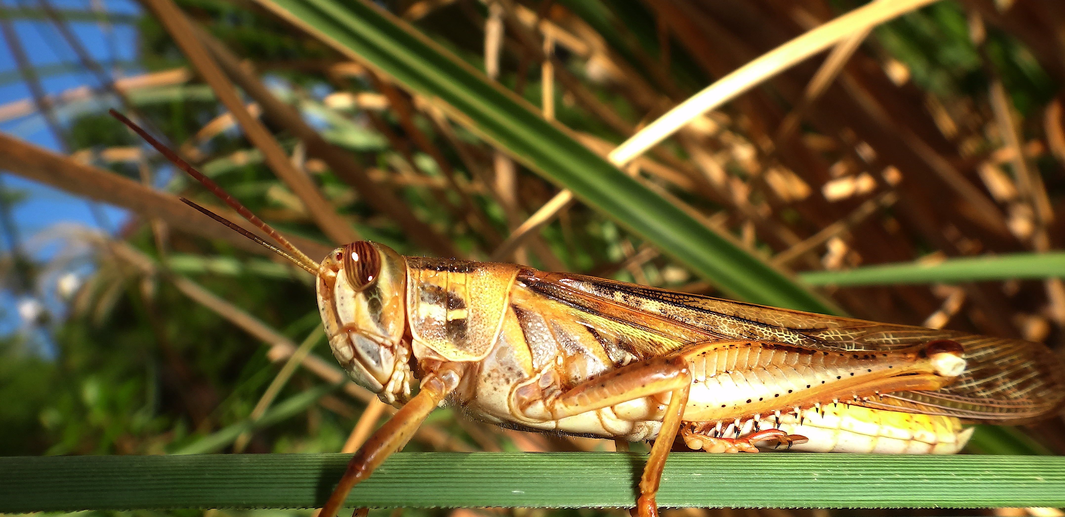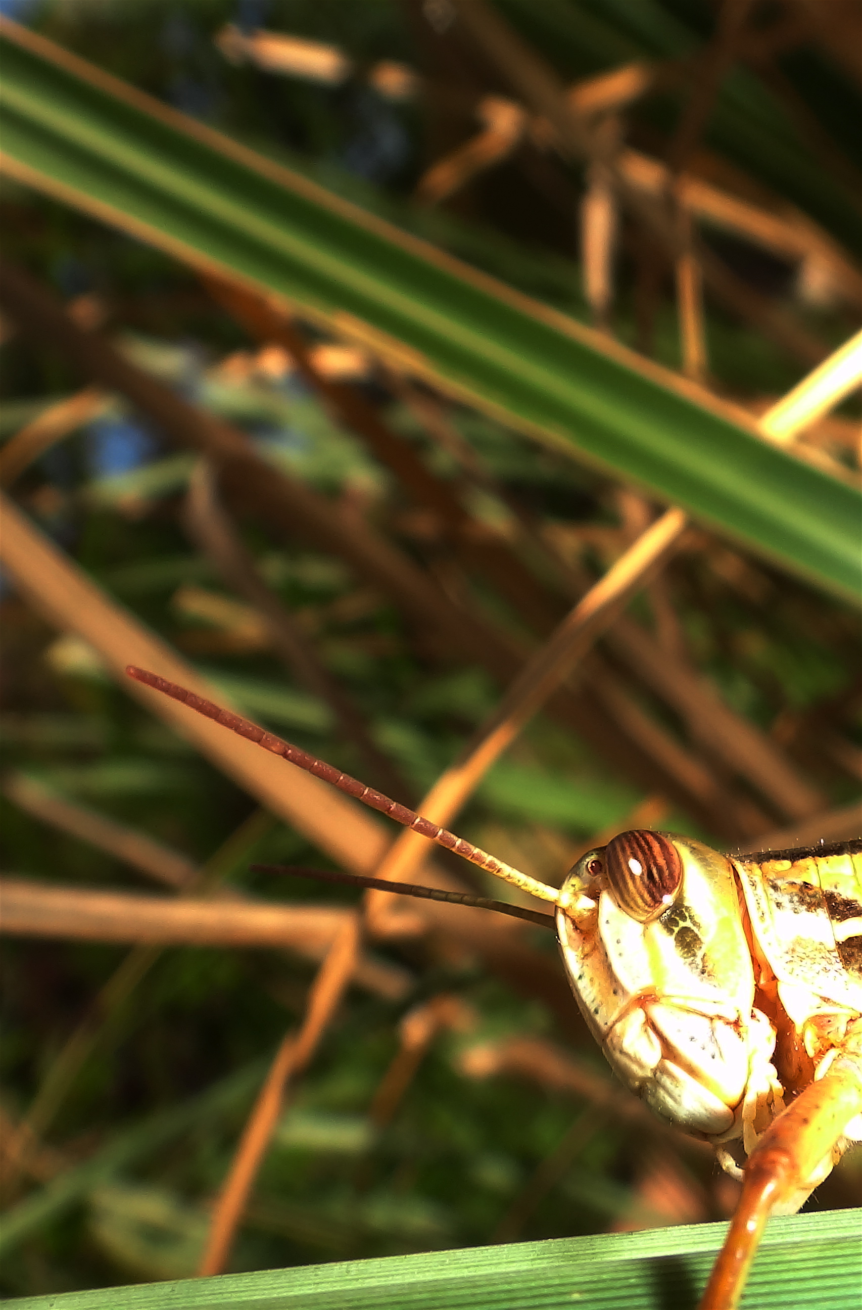I would not want to get my fingers close enough to do a Vulcan Mind Meld on that spiny, hooked legged critter and yes It did keep a close eye on me. I tracked it for quite some time using some ancient Naboo techniques, it finally landed in the pampas where, exhausted, I got these shots in. The design of these creatures really is quite amazing up close.