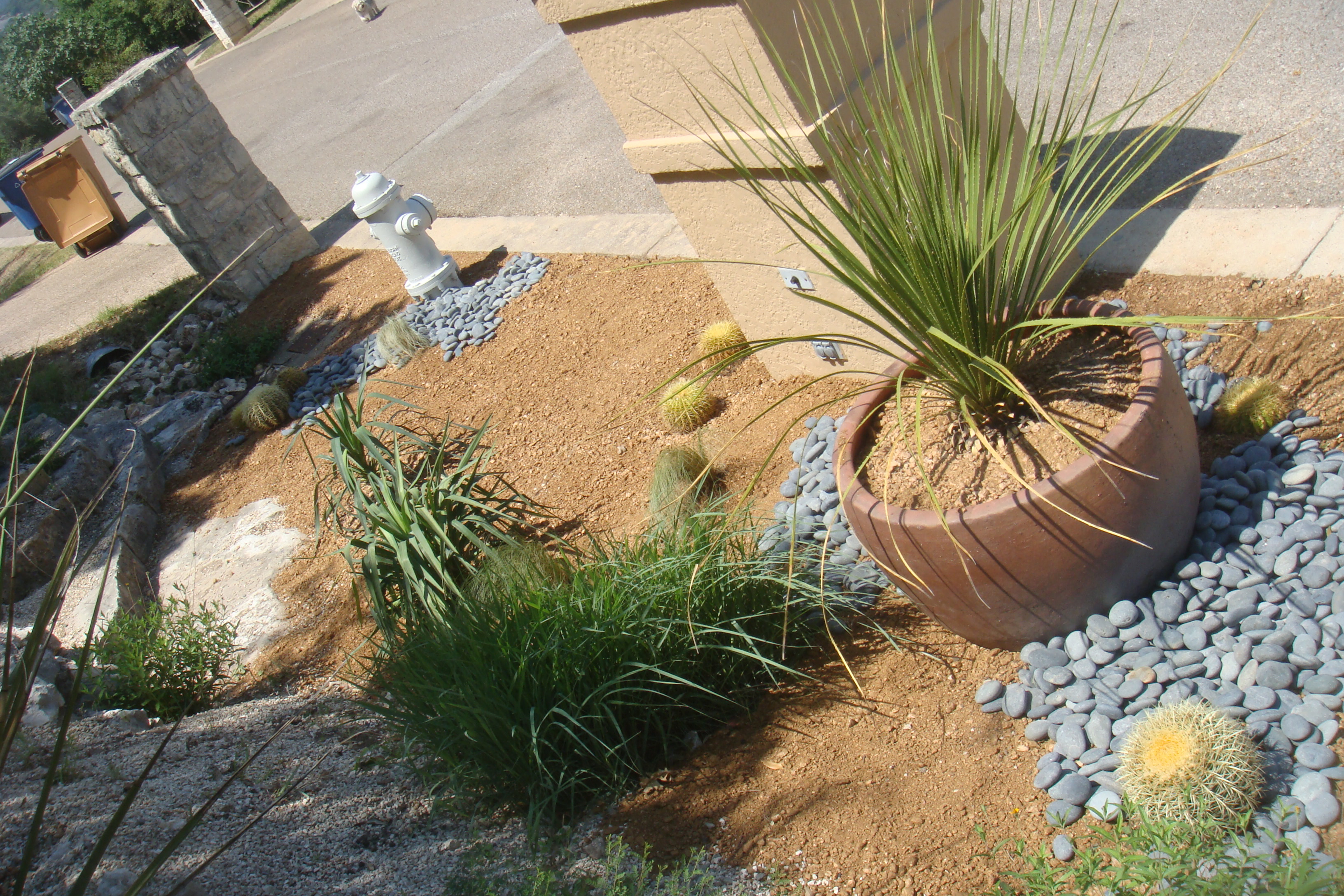 Great work on the Mt. Bonnell project – I especially like the look of the new hell strip. Are those inland sea oats tucked behind the sotol planter?