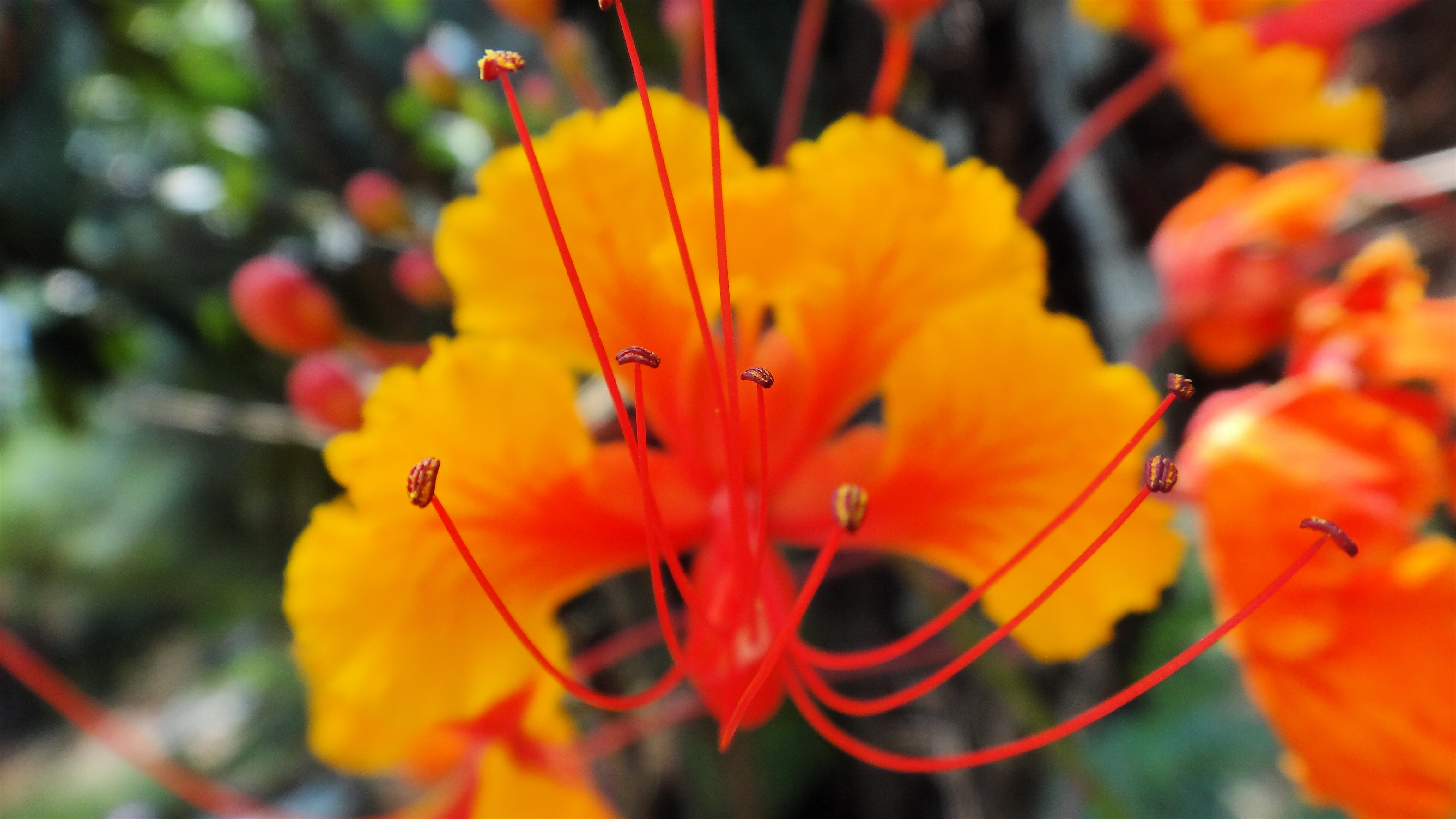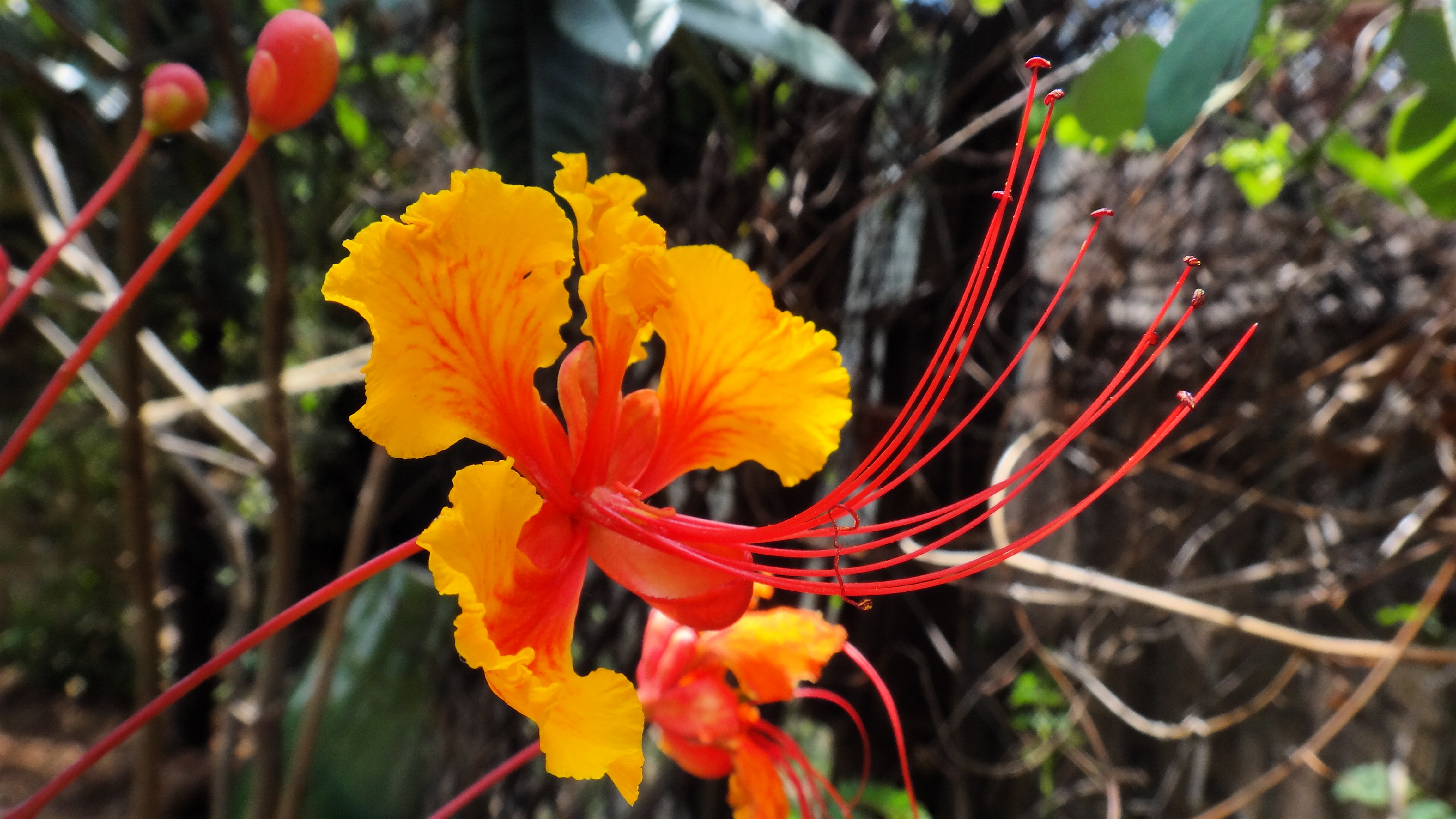 Temperatures and blooms heat up this week in central Texas, this pride of Barbados responded by wearing its flamboyant carnival outfit,