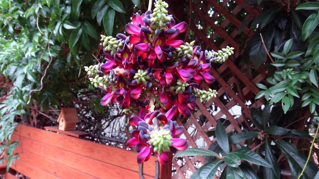 ah, I was confused when I read your post. I thought your comment about the Dicliptera was about another plant. I have both in my yard, too. My dicliptera I thought was a complete goner after the winter, and now it’s coming back strong, but no blooms yet. Looking forward to both of them blooming and attracting hummers. Evergreen wisteria gets about 5 hours sun and looks quite anemic – always has since birth. I give it plenty of compost, seaweed with iron, and room to grow, but it’s just quite stunted, like all the vines in my yard. Remember, I’m the one that can’t even grow crossvines…