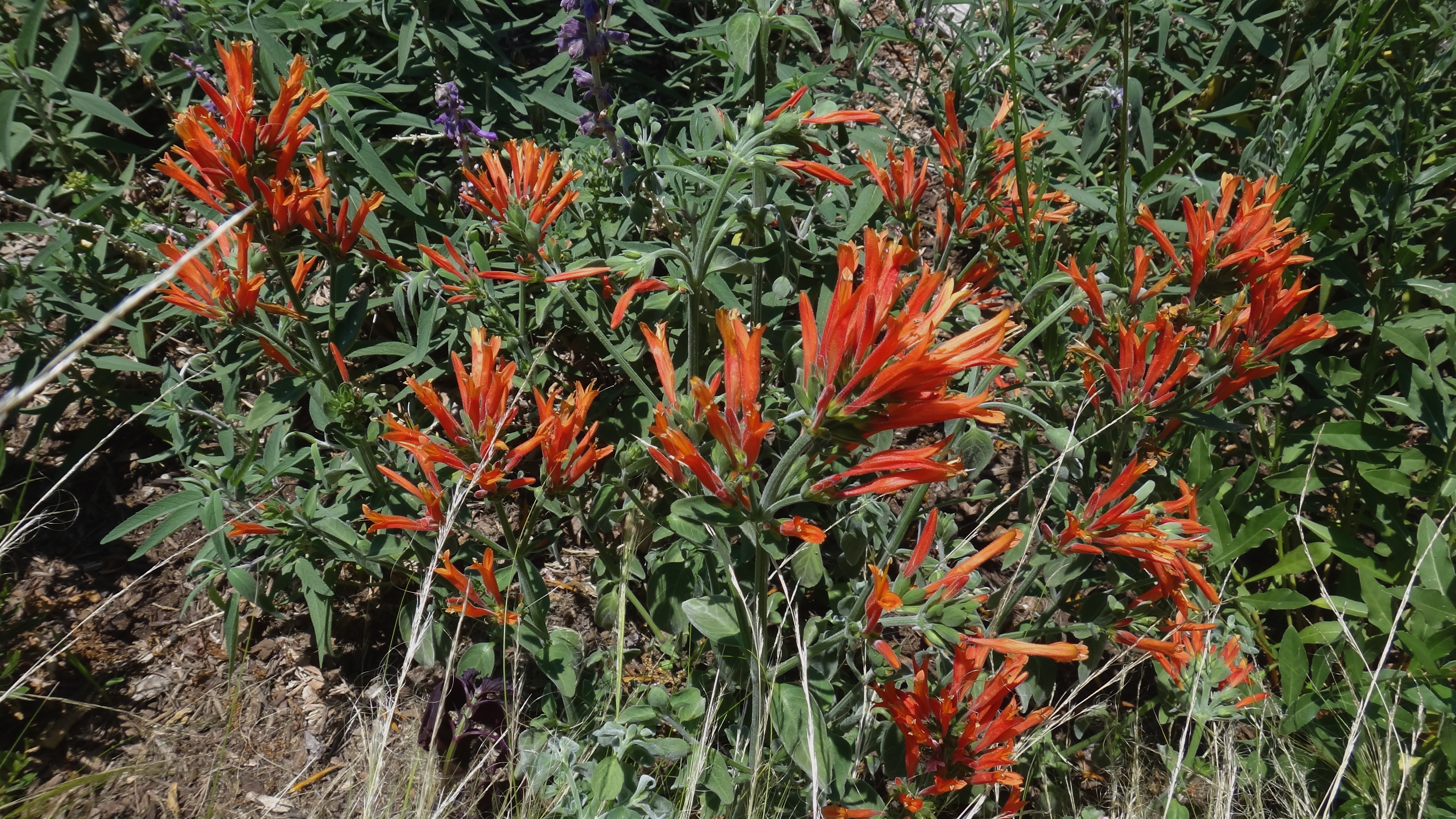 This next plant is a bit of a mystery to me as I have no idea purchasing it or planting it, could someone have given me this at one of our monthly get-togethers? Anyway this fiery plant just popped up with an amazing display this year and the hummingbirds are all over it, which is great because hummers have always been scarce in the Patch (at least the flying variety).