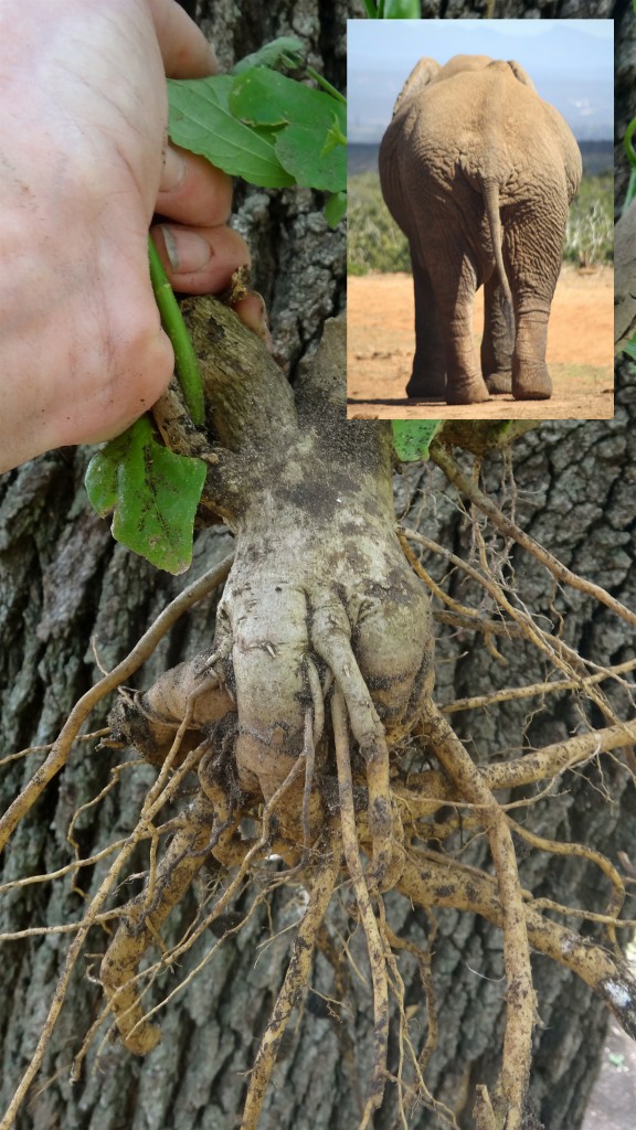 Oh yes, we’re under starter’s-orders and we’re off to a very classy start…poor Ron, a mandrake looking root AND an elephant butt comparison shot. I am not sure which is scaring him most?