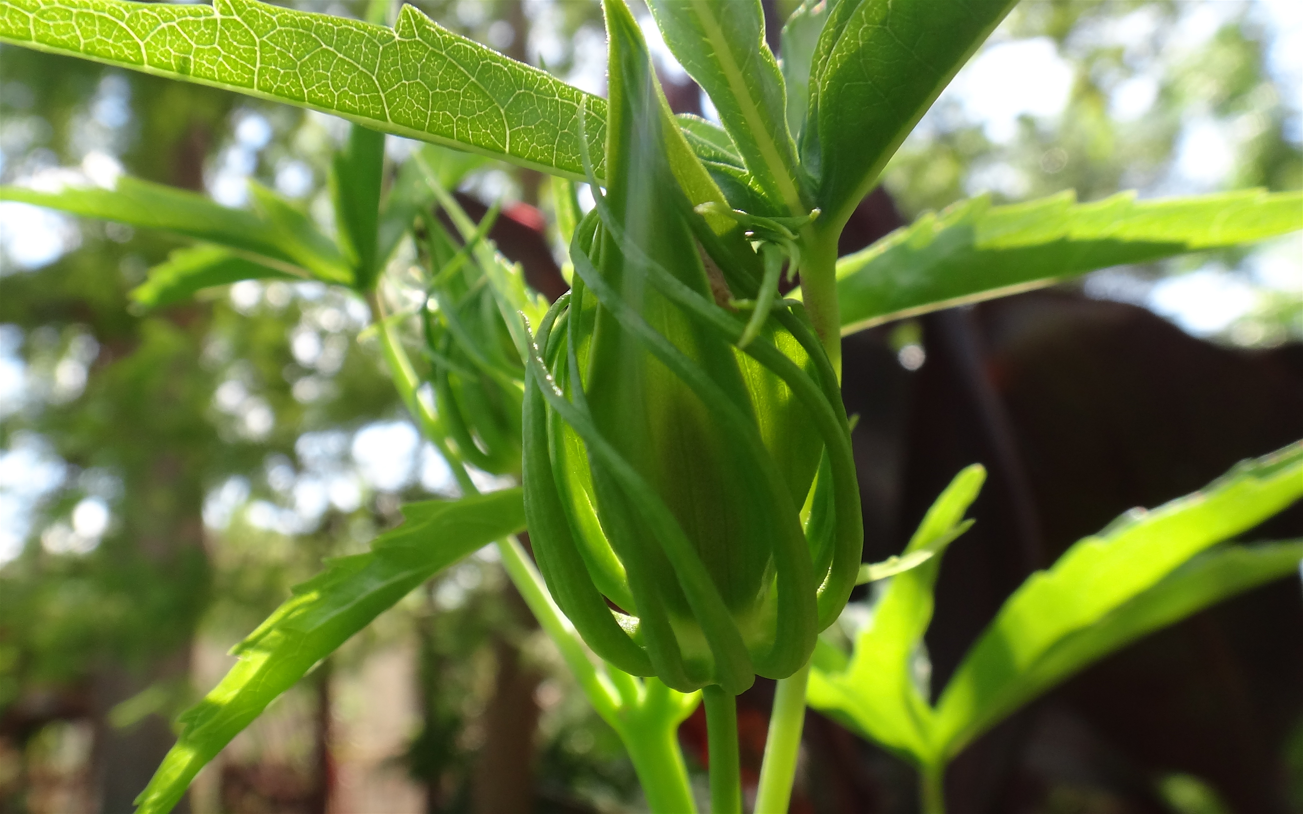 I dug up this star hibiscus late spring and replanted it in a large pot, placing and treating it like a marginal plant in my pond (thanks for the advice Bob, http://dracogardens.blogspot.com/ ). It first went into shock, I kept a close eye on it, then it rebounded with vigor and is doing better then it ever did in the ground. It has grown taller and developing a set of very decorative looking blooms.