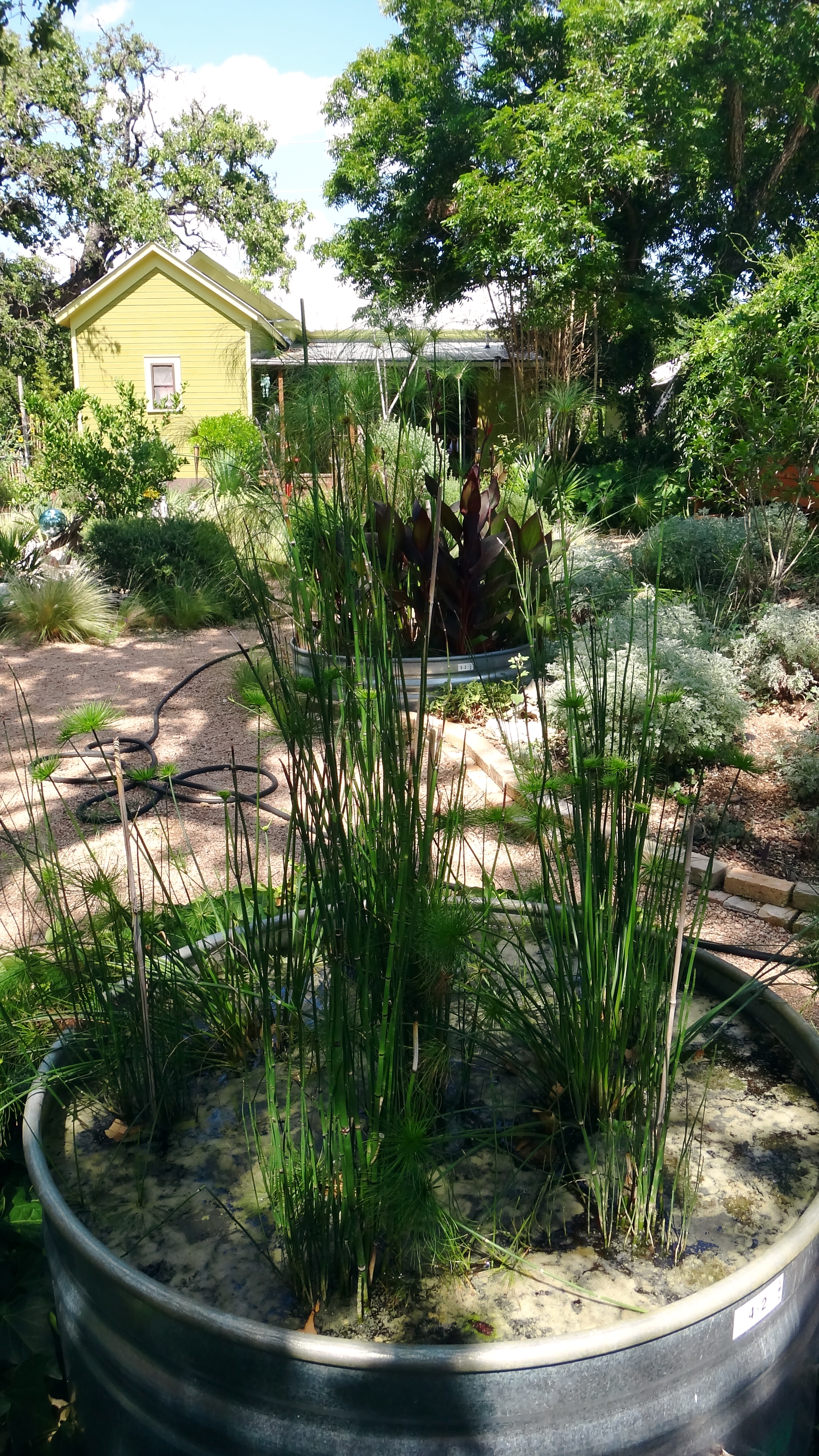 Another stock tank experiment is slowly taking shape and filling in slowly with dwarf papyrus and horsetail reed. This tank is commonly referred to as the “disgusting tub’ by my halflings for a number of reasons. First of all I go around systematically prodding it with a bamboo cane, it generally responds with a few flatulent noises to the delight of everybody, secondly, as I filled the tank with Dillo Dirt, conversation wandered to exactly what Dillo Dirt was made from…well the “disgusting tub” obviously gained even more relevance. The event that sealed it as a place to avoid was when a bamboo prod led to the expulsion of the nasty stuff in a particularly violent air-bubble that sent some of the contents airborne and onto the side of my face. (Insert lots of ewwing).