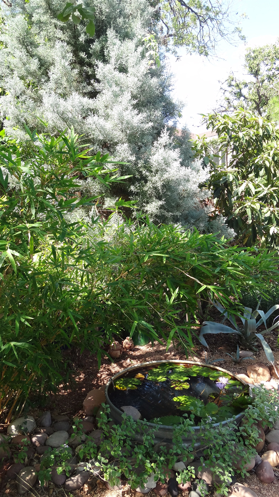 If this sunken stock tank did not have a Madame Ganna Walska growing in it (now there is something you don’t get to say every day) I would be in it, squatting to my neck with some ice from the corner store attempting to cool down under the canopy of this Arizona ‘blue ice’ cypress.
