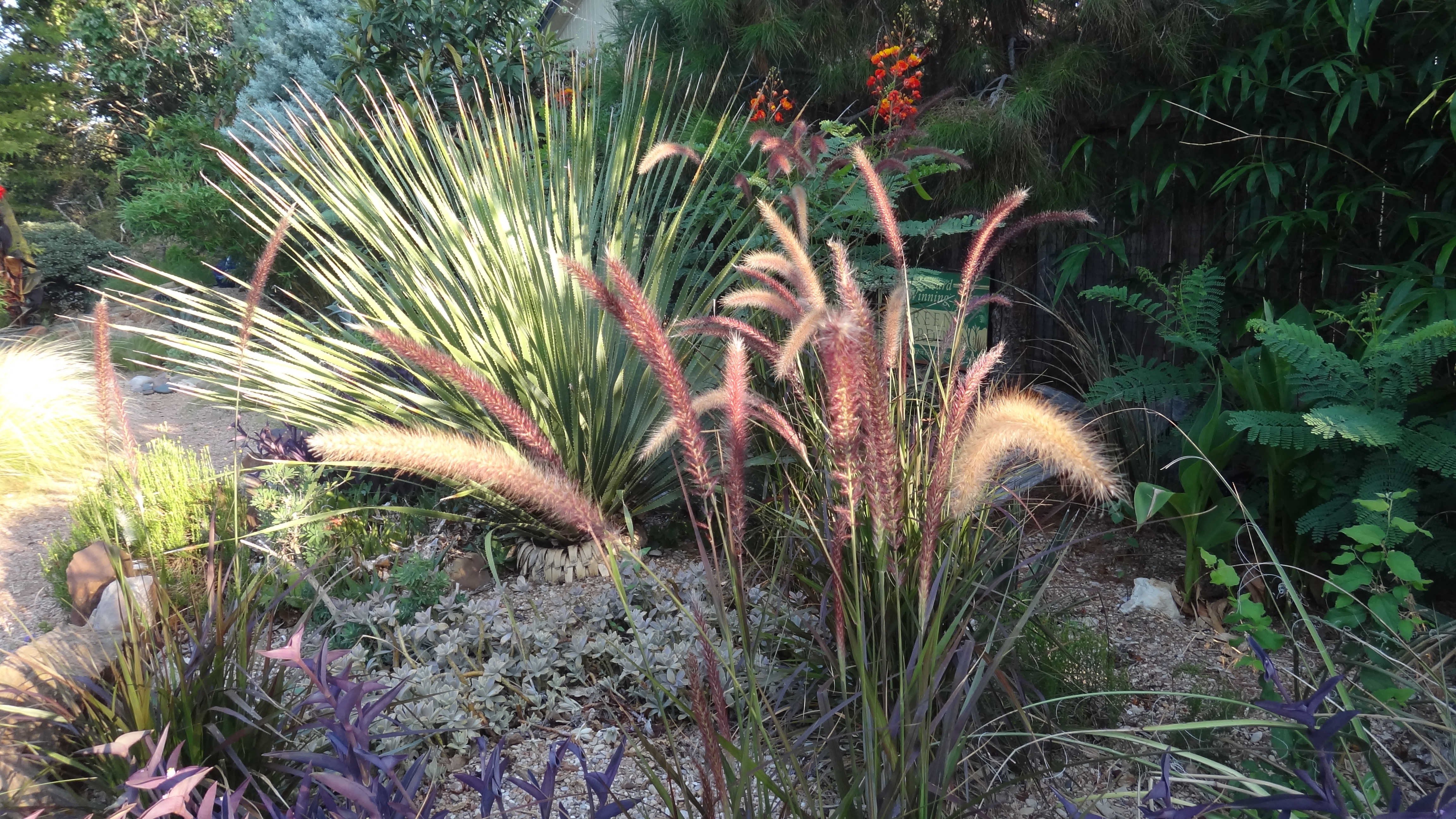 Kumo the dog is working out brilliantly, apart from his propensity to “dry-off” from the sprinkler on my feather grasses, (he has flattened two so far).