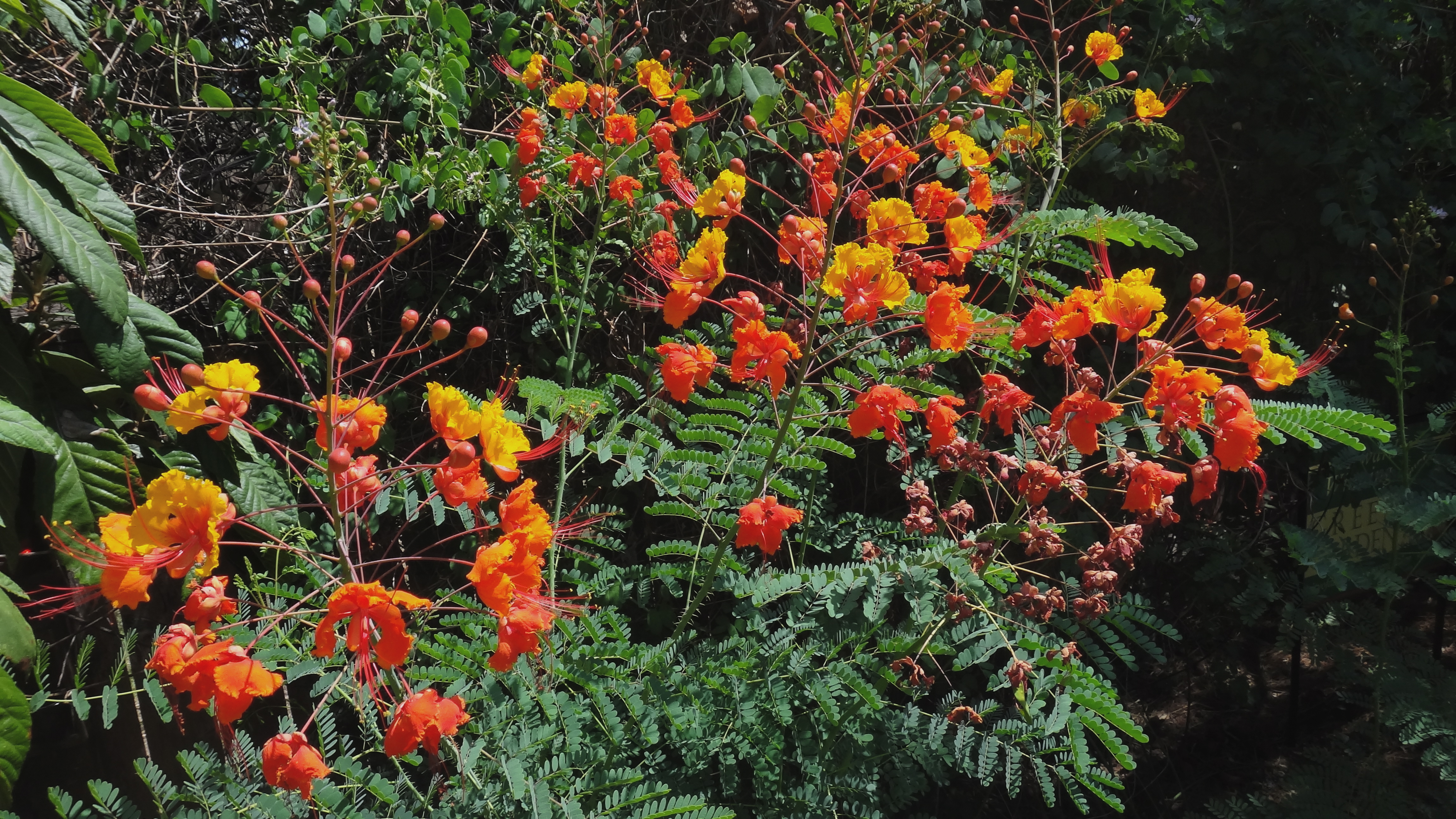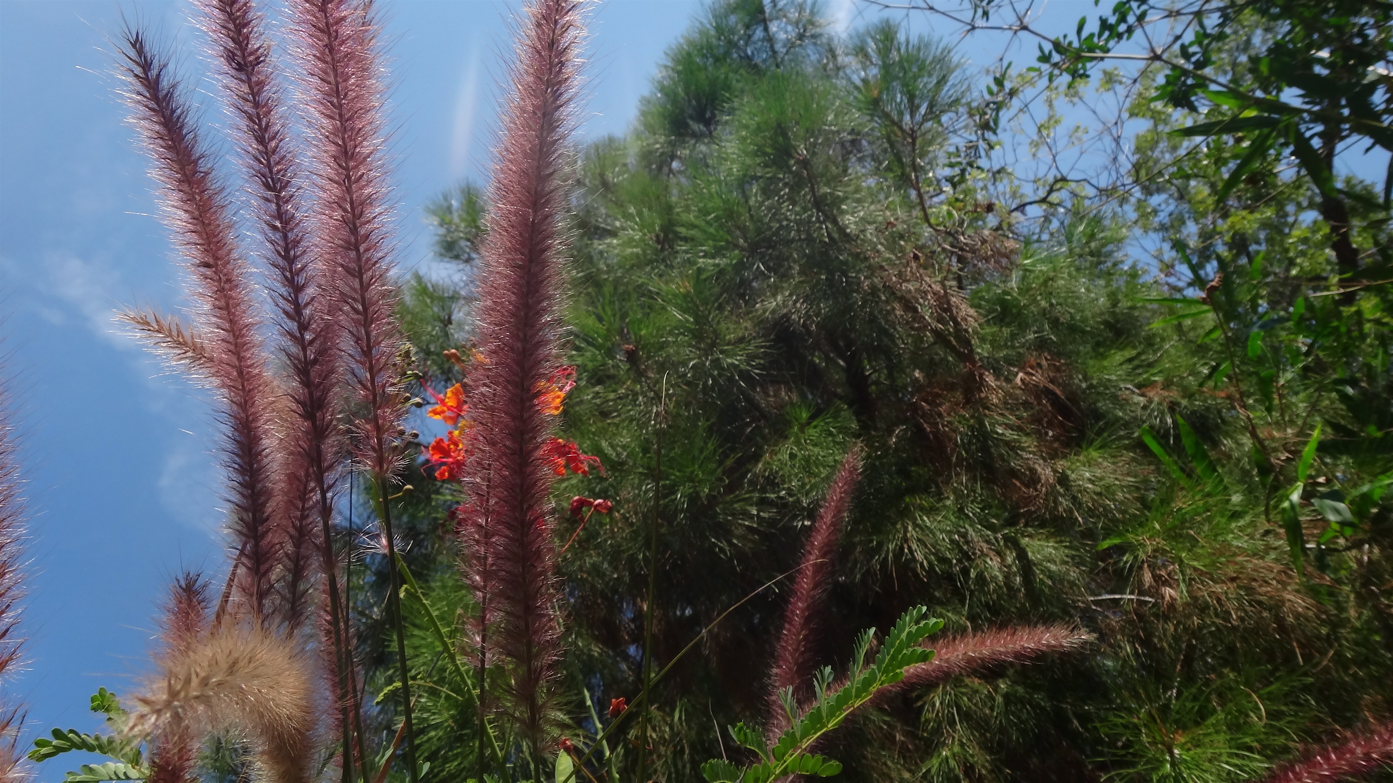 I keep planting the seeds from the background pride of Barbados all down this fence line, every year I seem to gain another couple of plants…
