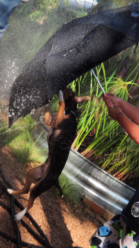 And we are really just starting our really hot summer months! Drought, drought, on top of more heat and drought, oh yes Texas is currently a painful experience. Glad you like the dancing Kumo, he loves the sprinkler and our kids paddling pool, well who doesn’t!