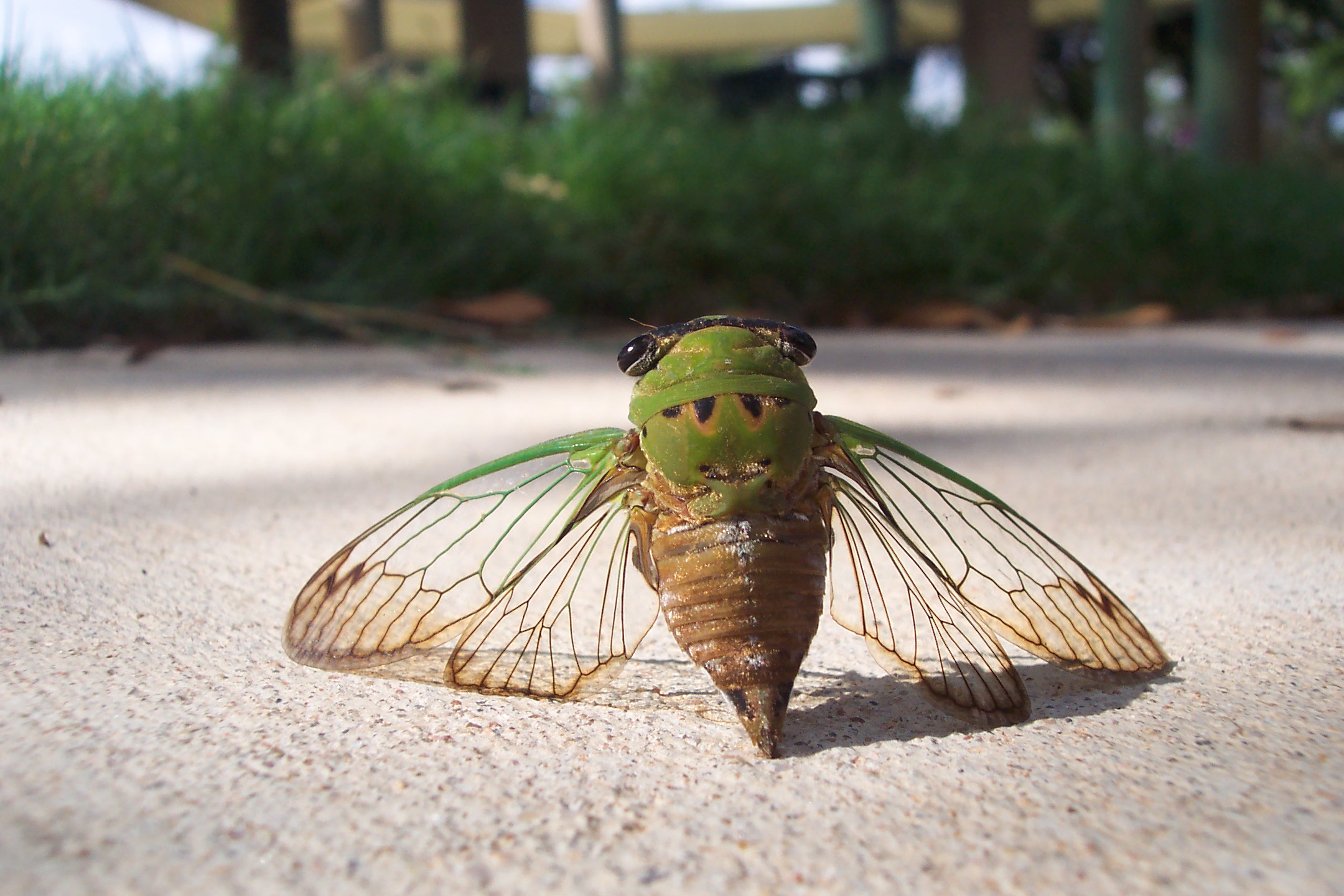This return flight to the burrow is difficult for the wasp (and I am sure no joyride for the cicada) because the cicada is often more than twice her weight. After putting the cicada in the nest cell, the female deposits an egg on the cicada and closes the cell behind her with dirt…Brrr. On a brighter note, these large wasps are generally non-aggressive towards humans. Still, I was taking no chances photographing this one.