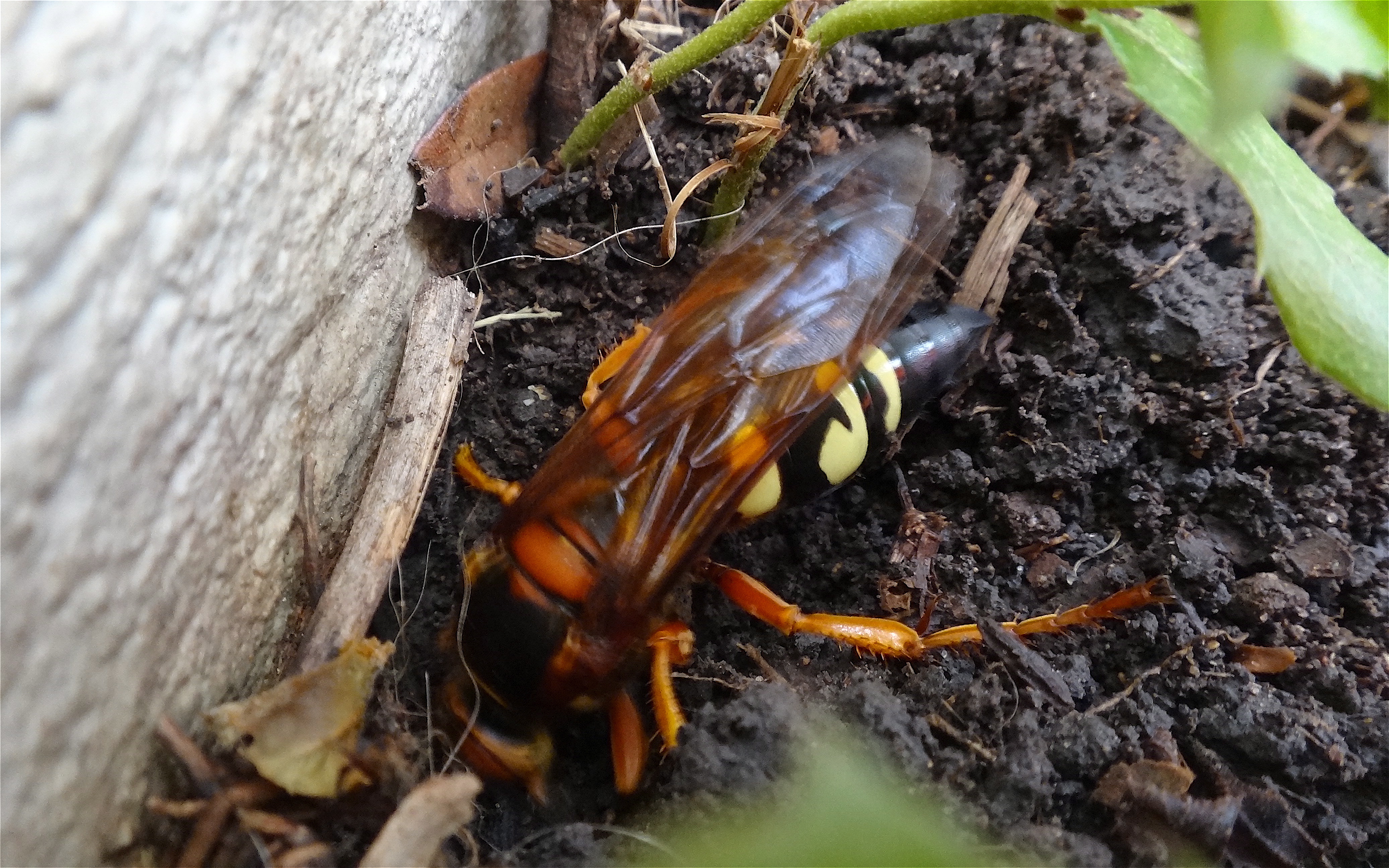or sometimes called a sand hornet, this large female was extremely busy digging in the earth.