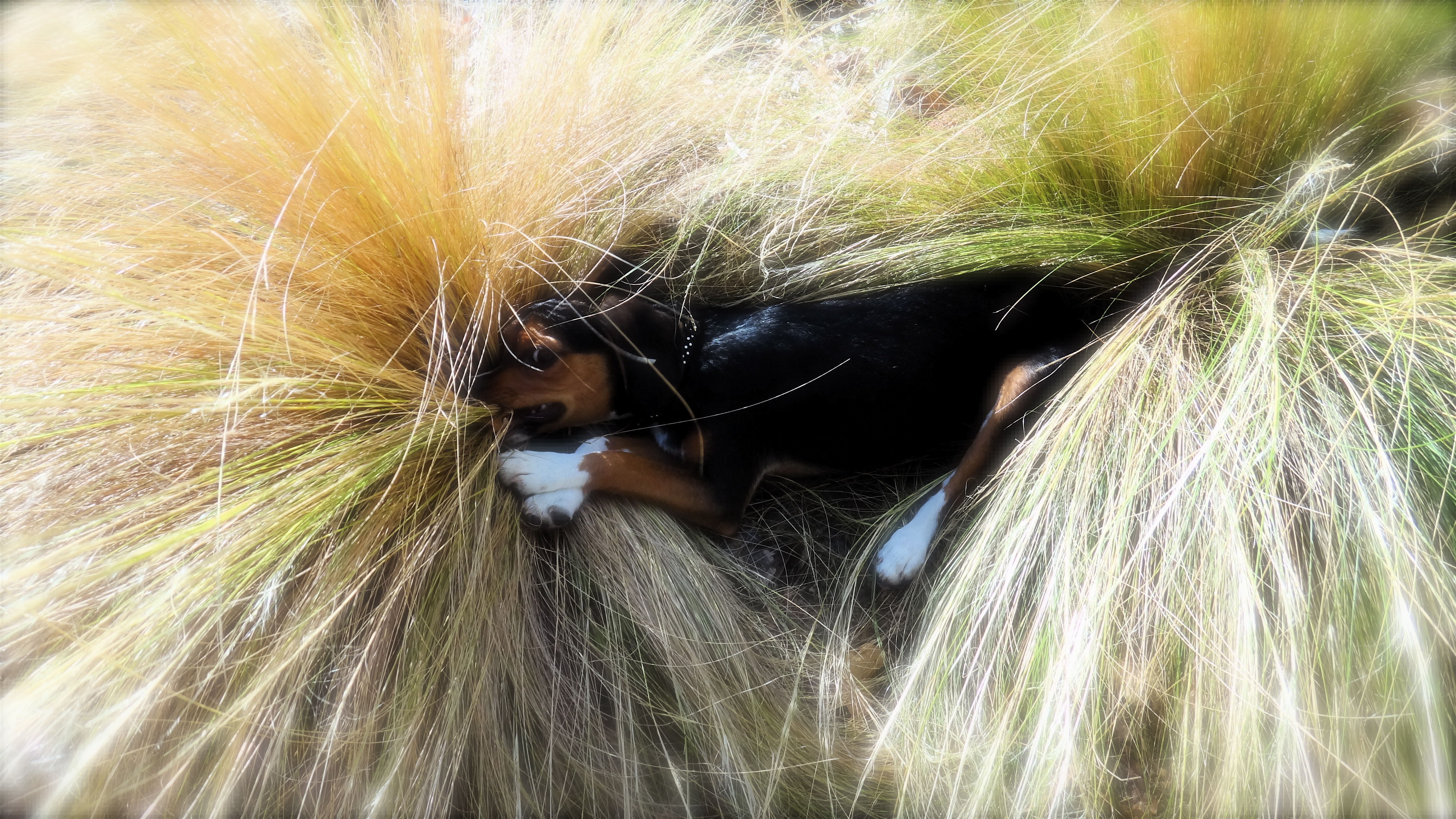 The dog is just 3 months old and completely daft, eating everything and anything…kids little plastic toys, twist ties, rubber bands etc. His unmentionables always seem to have part of a plastic toy soldier crawling up the north face at the moment :-(