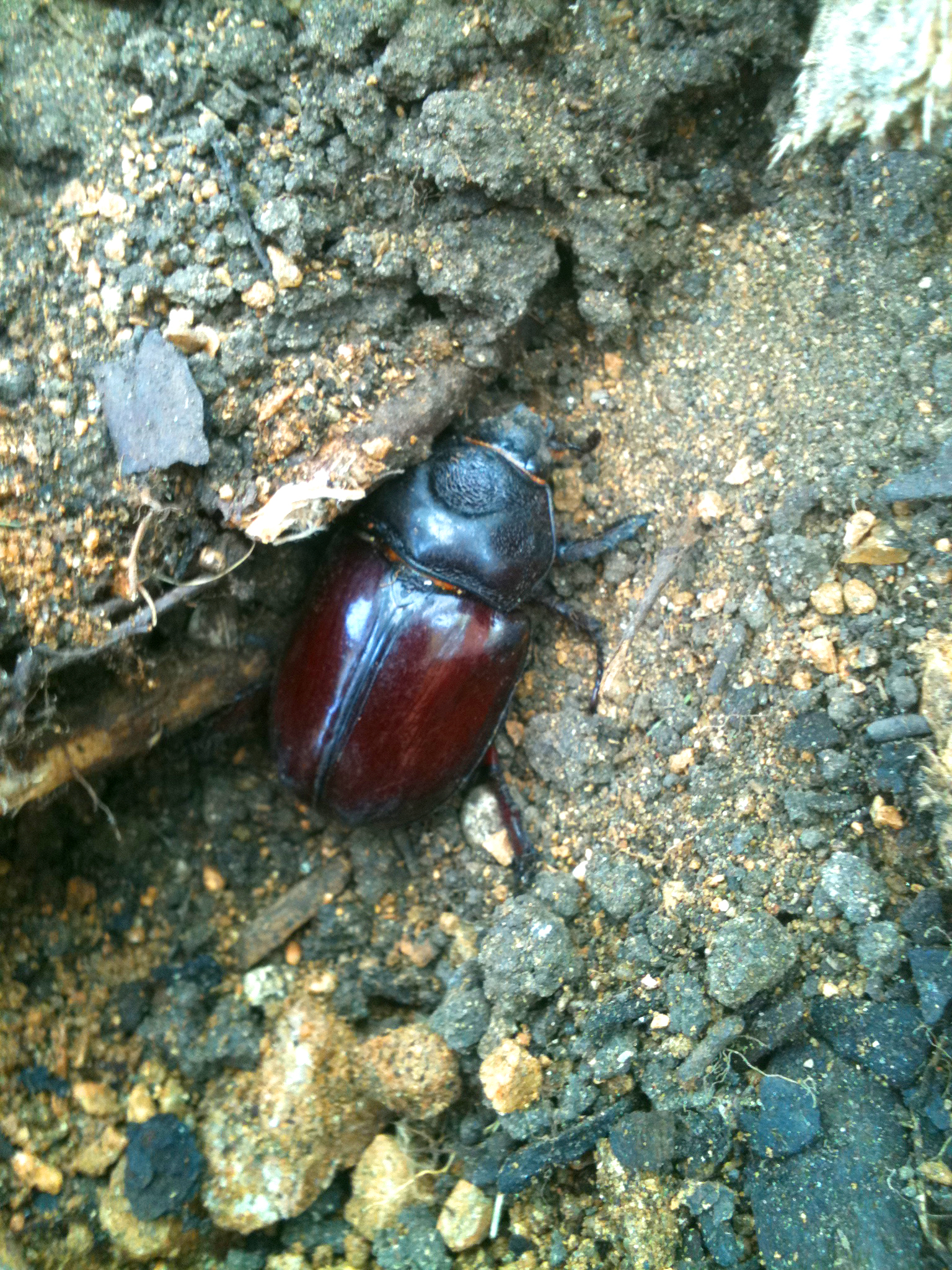 or rhinoceros beetle and it was a monster. I threw a saddle over it and took it for a walk around the garden. These chaps are among the largest of beetles, reaching 60 millimeters in length, but are completely harmless to humans because they cannot bite or sting. Their common names: Hercules beetles, unicorn beetles or horn beetles refer to the characteristic horns borne only by the males of most species in the group. The males use their horns for fighting (usually over food) and impressing a female. If a beetle is feeling threatened and cannot dig itself into the ground, it will make loud hissing squeaks.