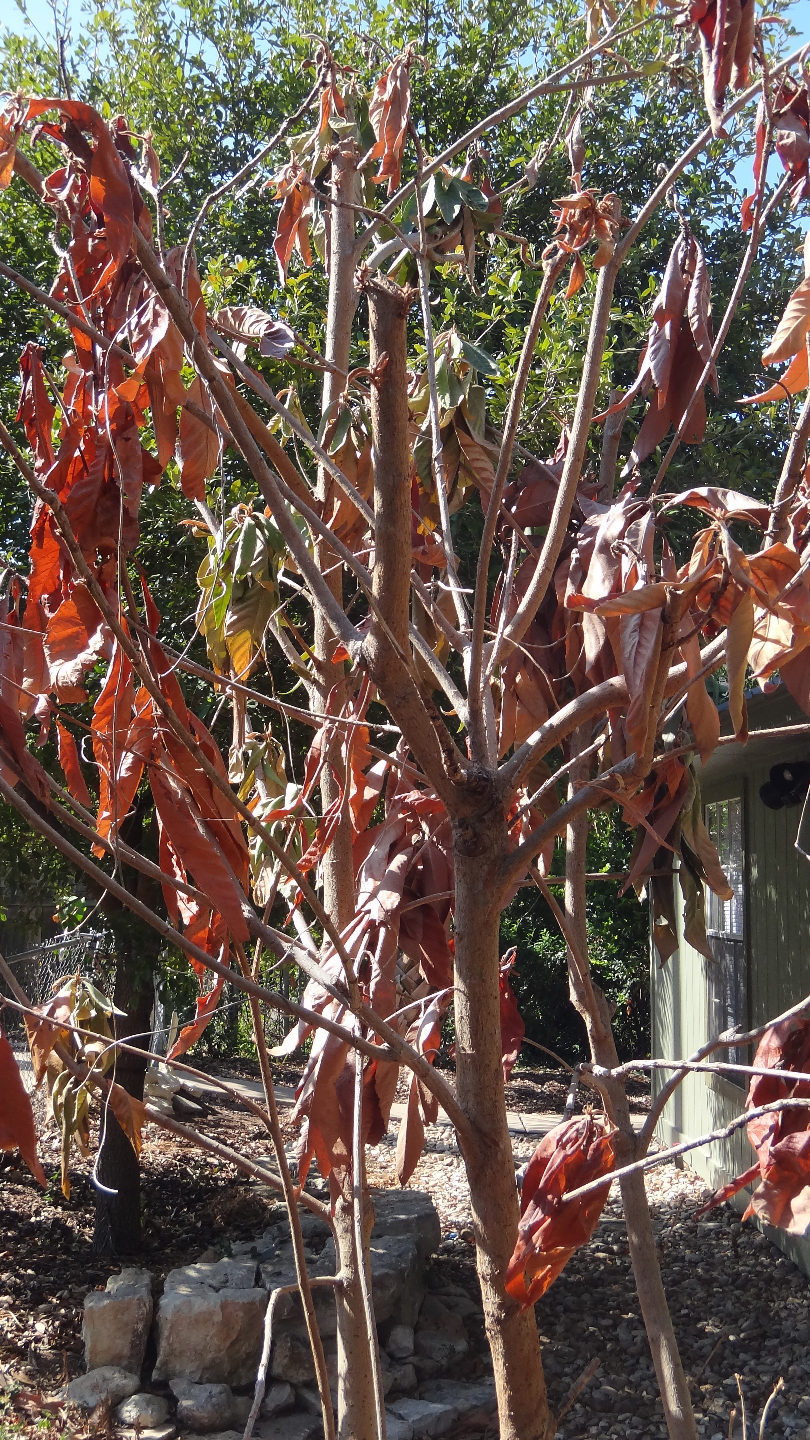 more pictures like this. It appears the heat is now randomly selecting loquats to fry up in the garden wok, garnished with some of my society garlic. This is one of my neighbors but my death toll is also rising, I have lost two well established trees so far.