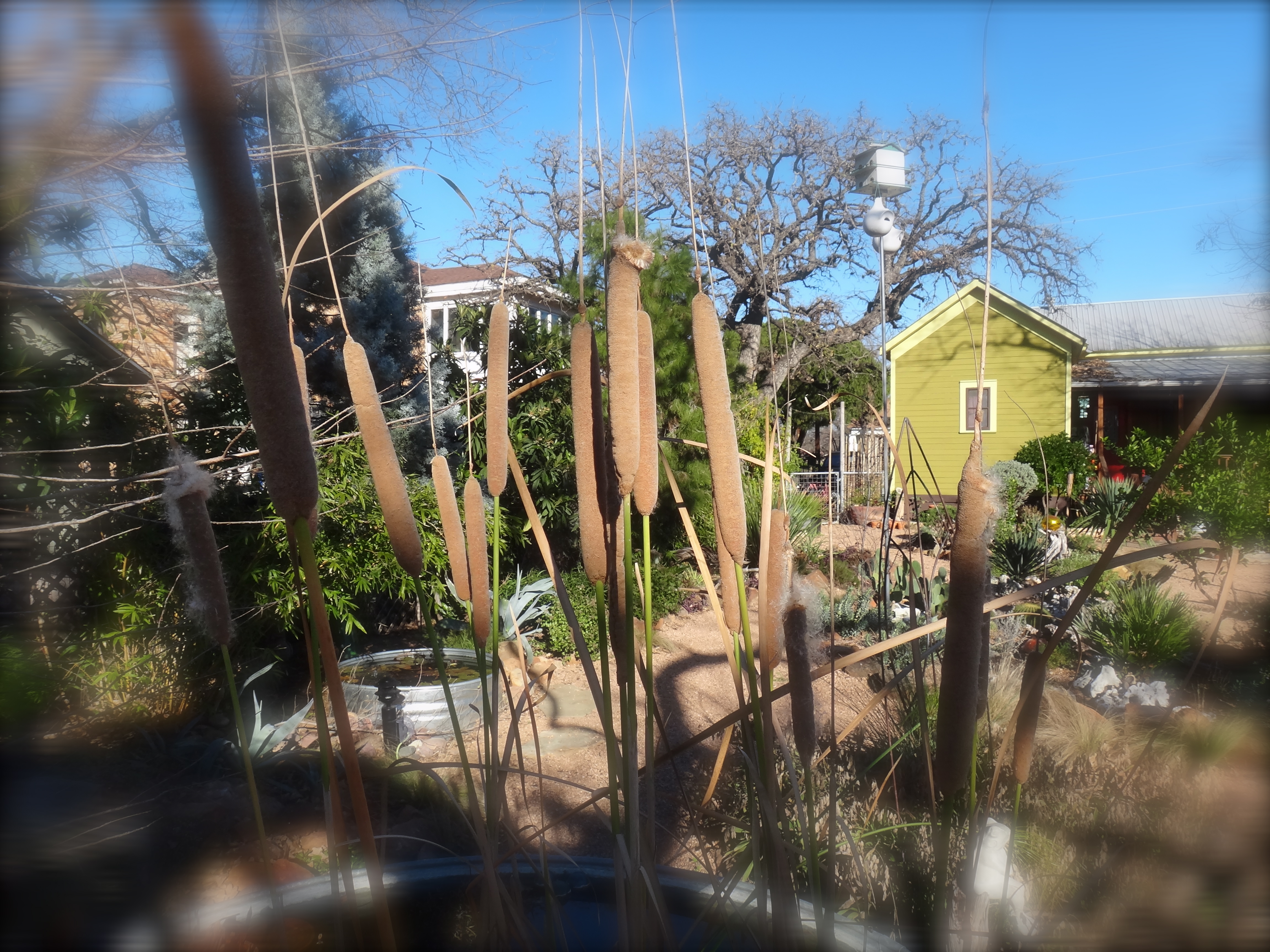 Ahhh, Thanks for reminding me that I want a Desert Trumpet Vine. I have seen it growing in Sacramento.. it should be growing in my yard as well. Cattails would be fun. My above ground steel pond looks totally disgusting at the moment.. I need to re-do it but its too cold right now. I can’t just empty it because I’d lose all my mosquito fish. Dang.