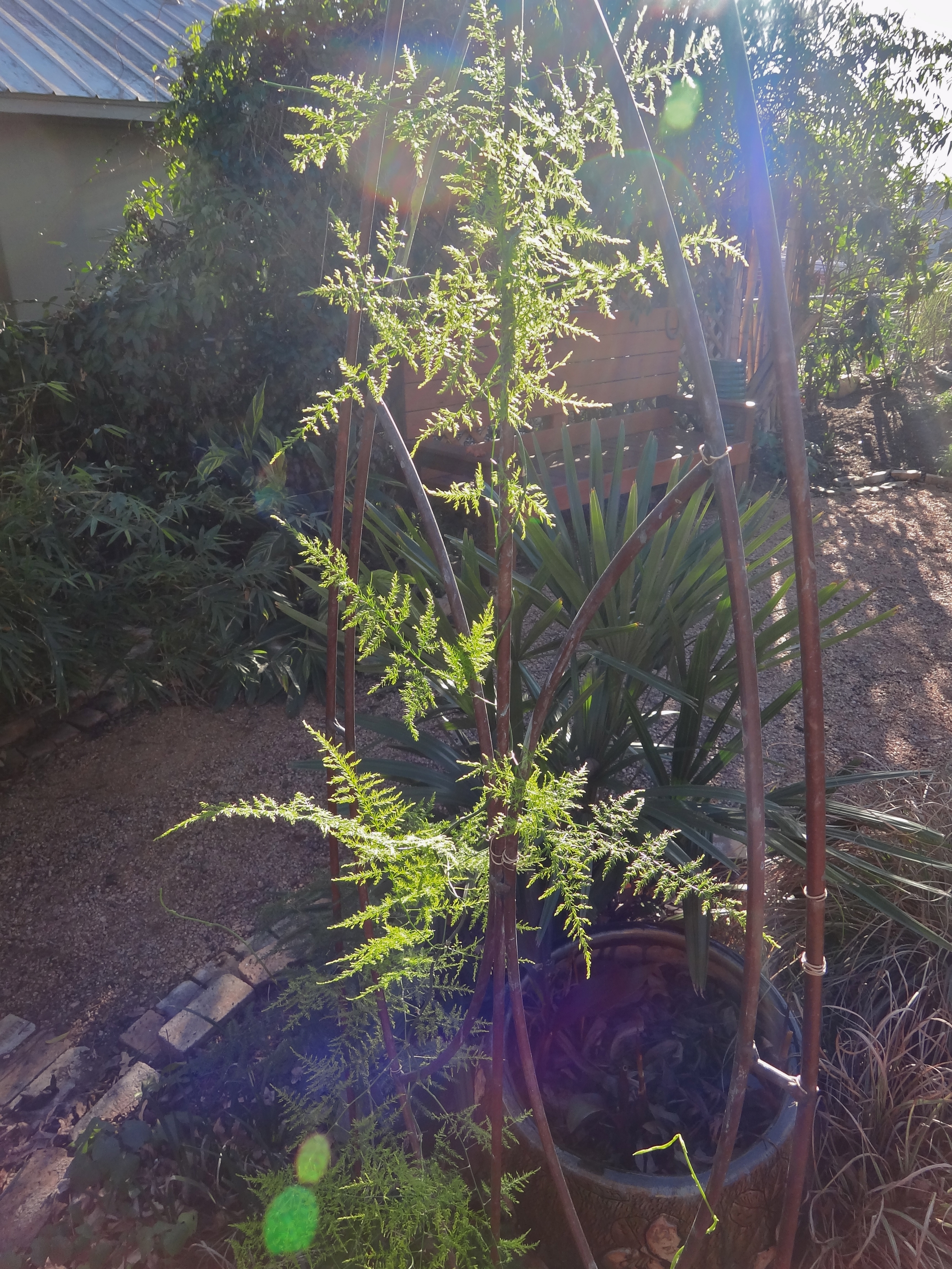 This plumosa in another part of the Patch has been strangling this Tikki torch for quite some time. I decided to unravel it,