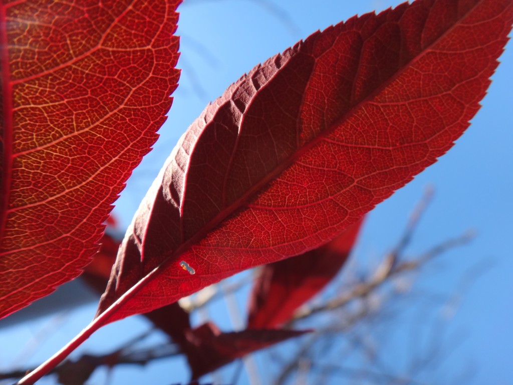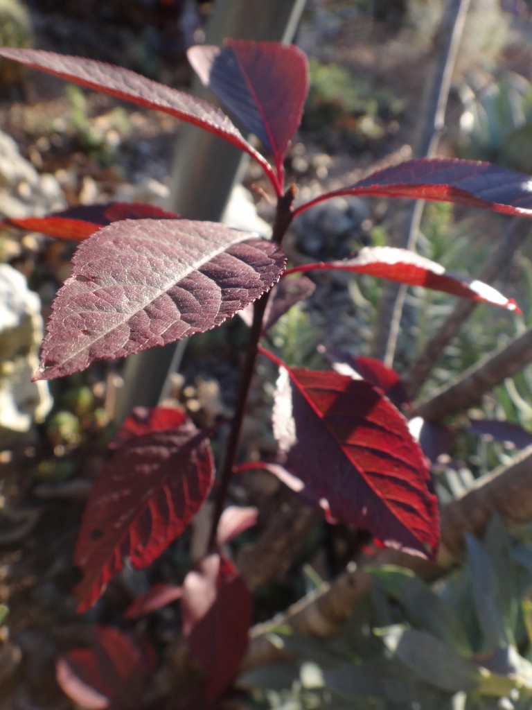 Winter foliage color provided by a purple leaf sand cherry,
