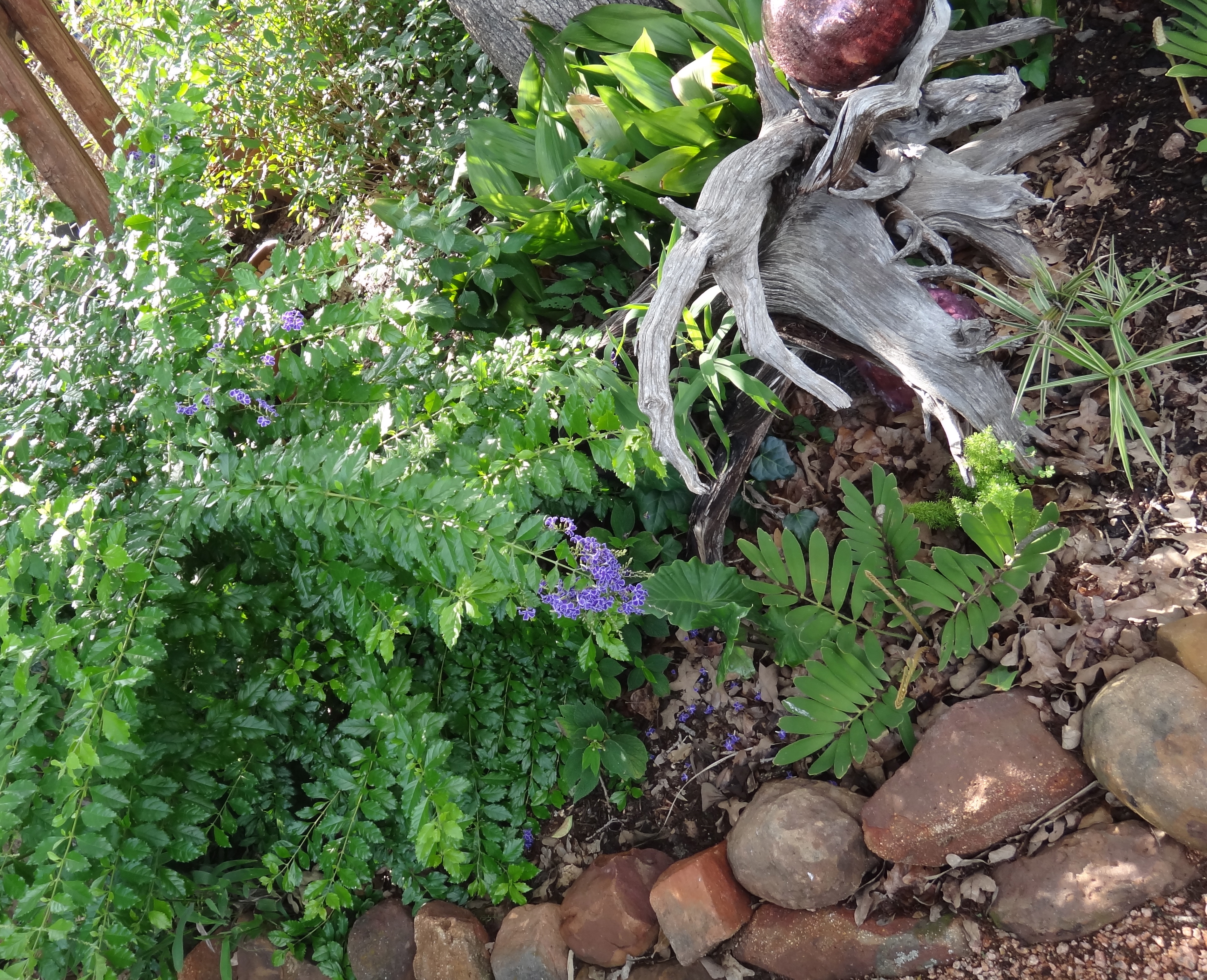 This ‘always thirsty’ hydrangea, (yes I said hydrangea), is doing very well after the rains,