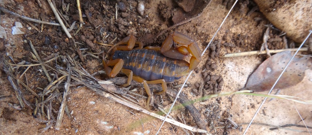 The same trip would have been a complete disaster if this chap, lurking under one of the limestone boulders had been a little more awake. This was one very plump ‘striped bark’ scorpion, and that looked like one serious stinger.