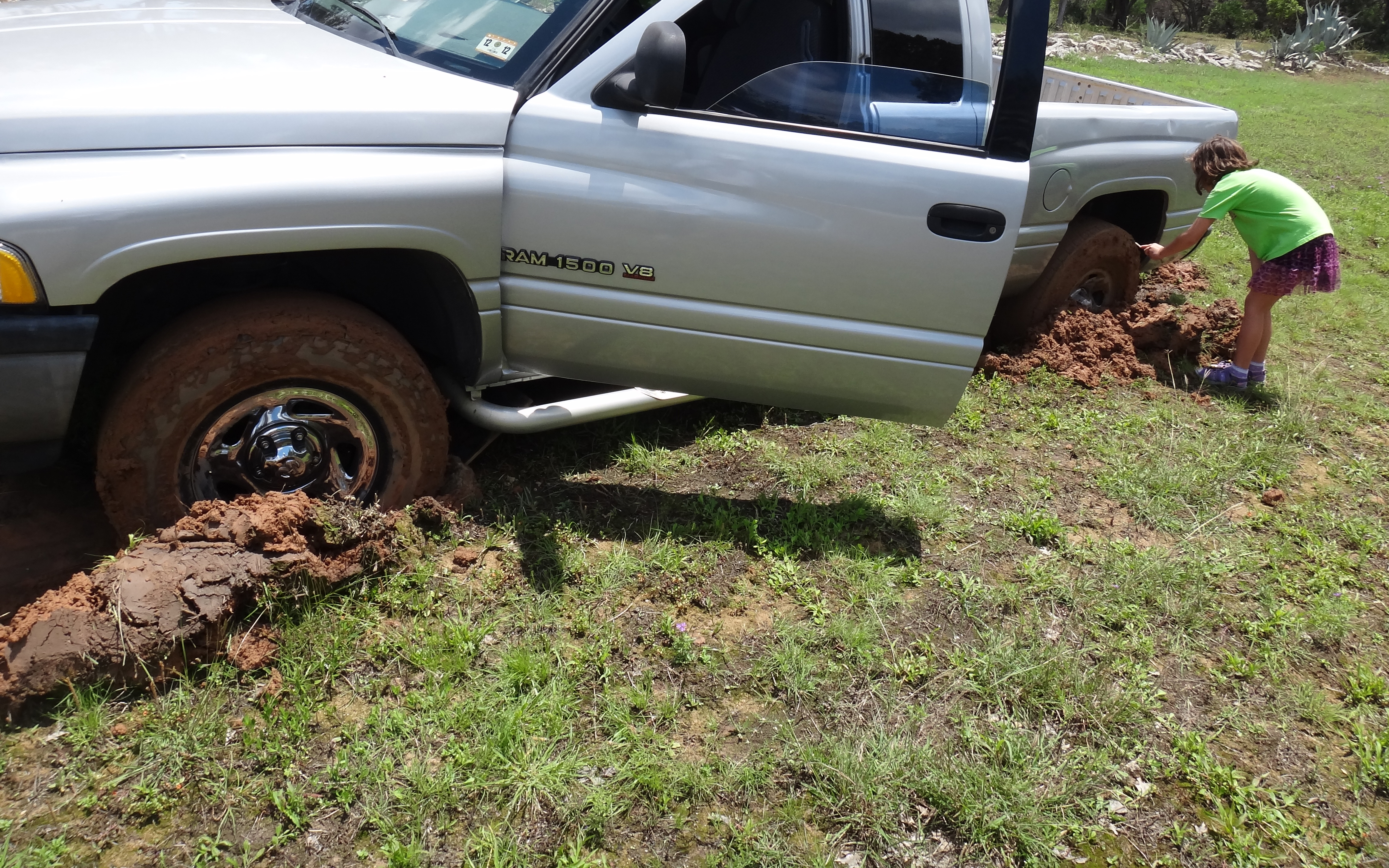My steed’s menacing growl is apparently much better than its gum-lined bite, especially when trying to gain traction in mud. This is what happened to me on a recent country rock procurement trip.