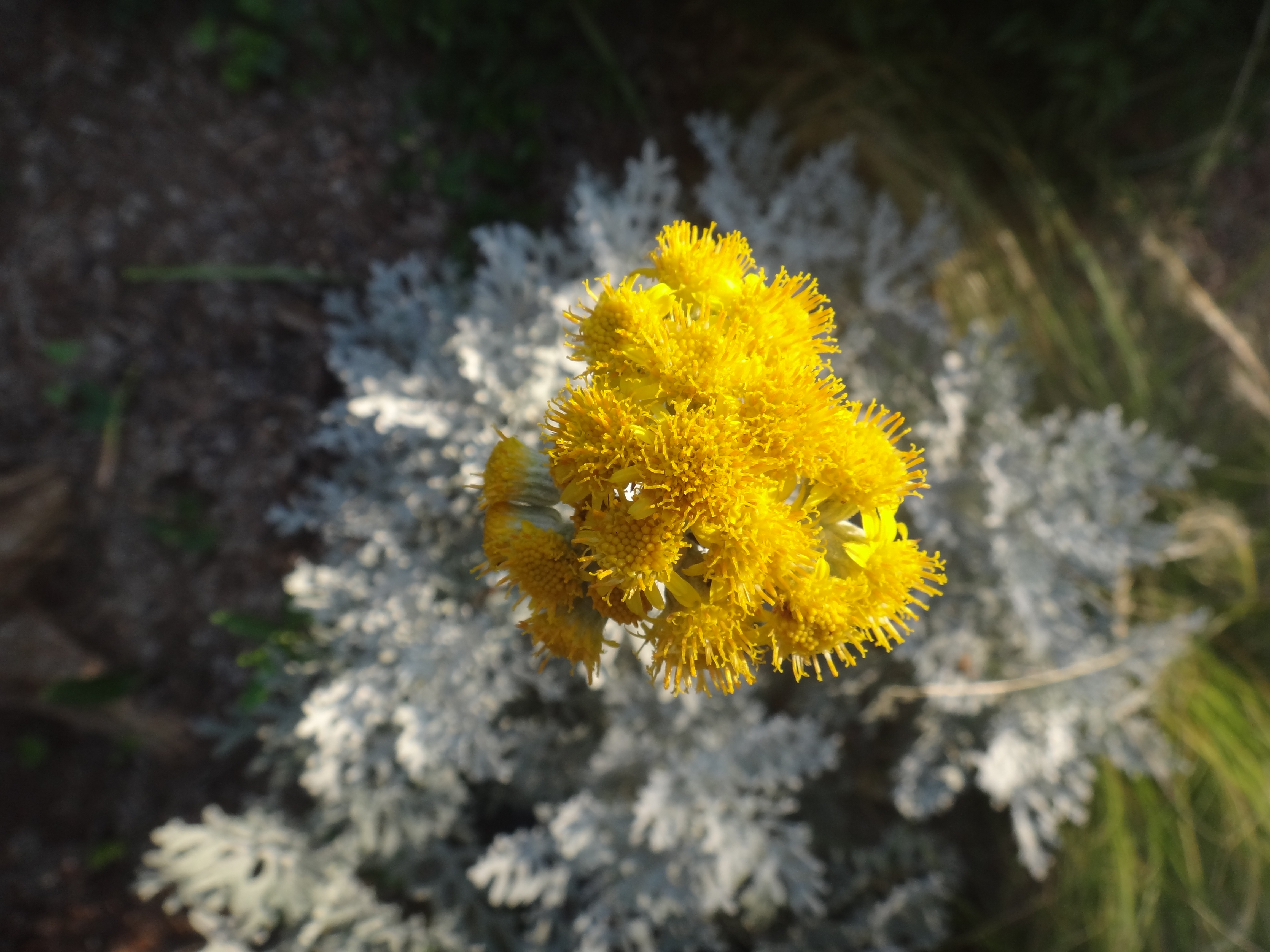 Dusty Miller provides a great contrast of silver and gold when it is blooming.
