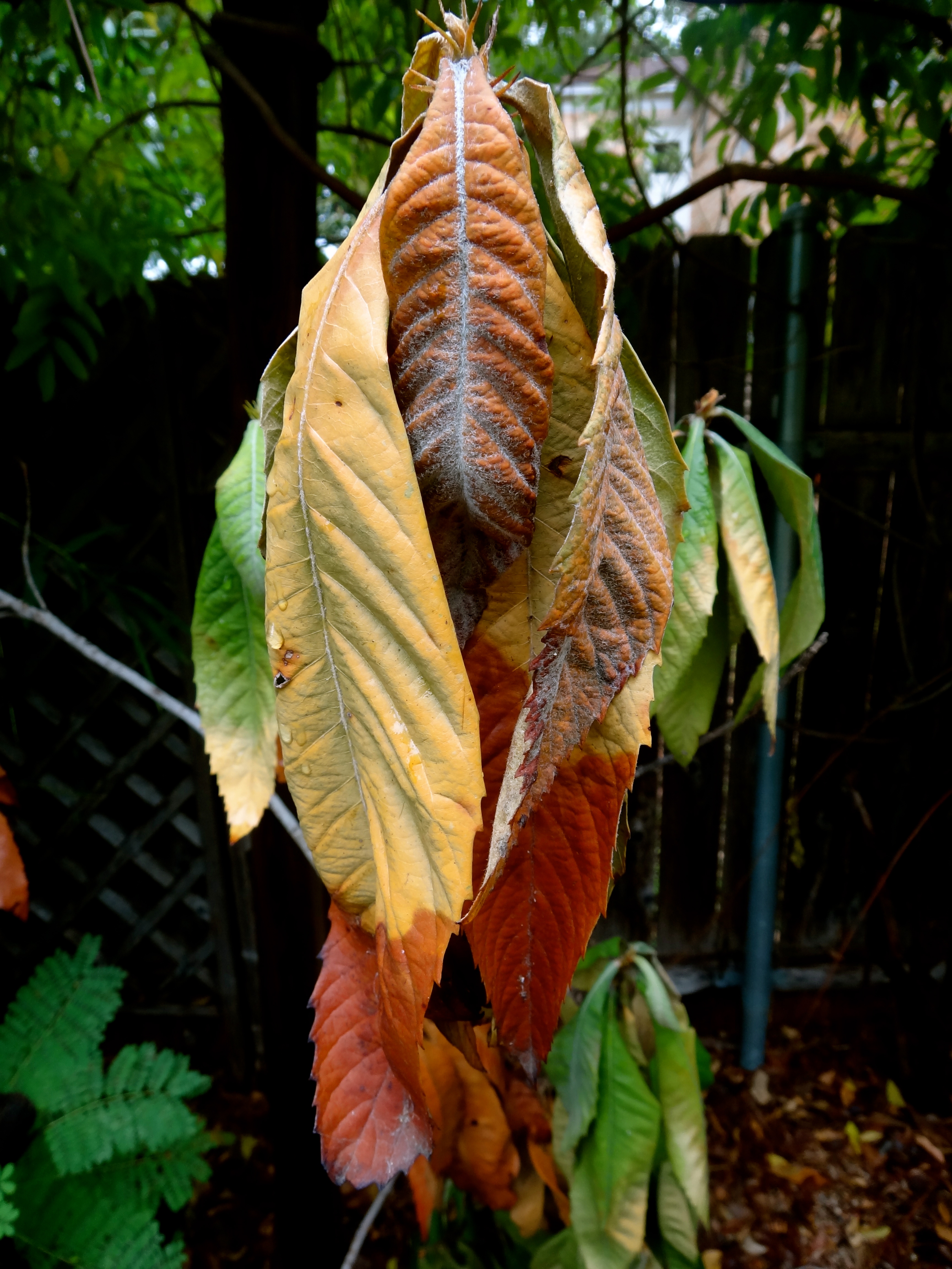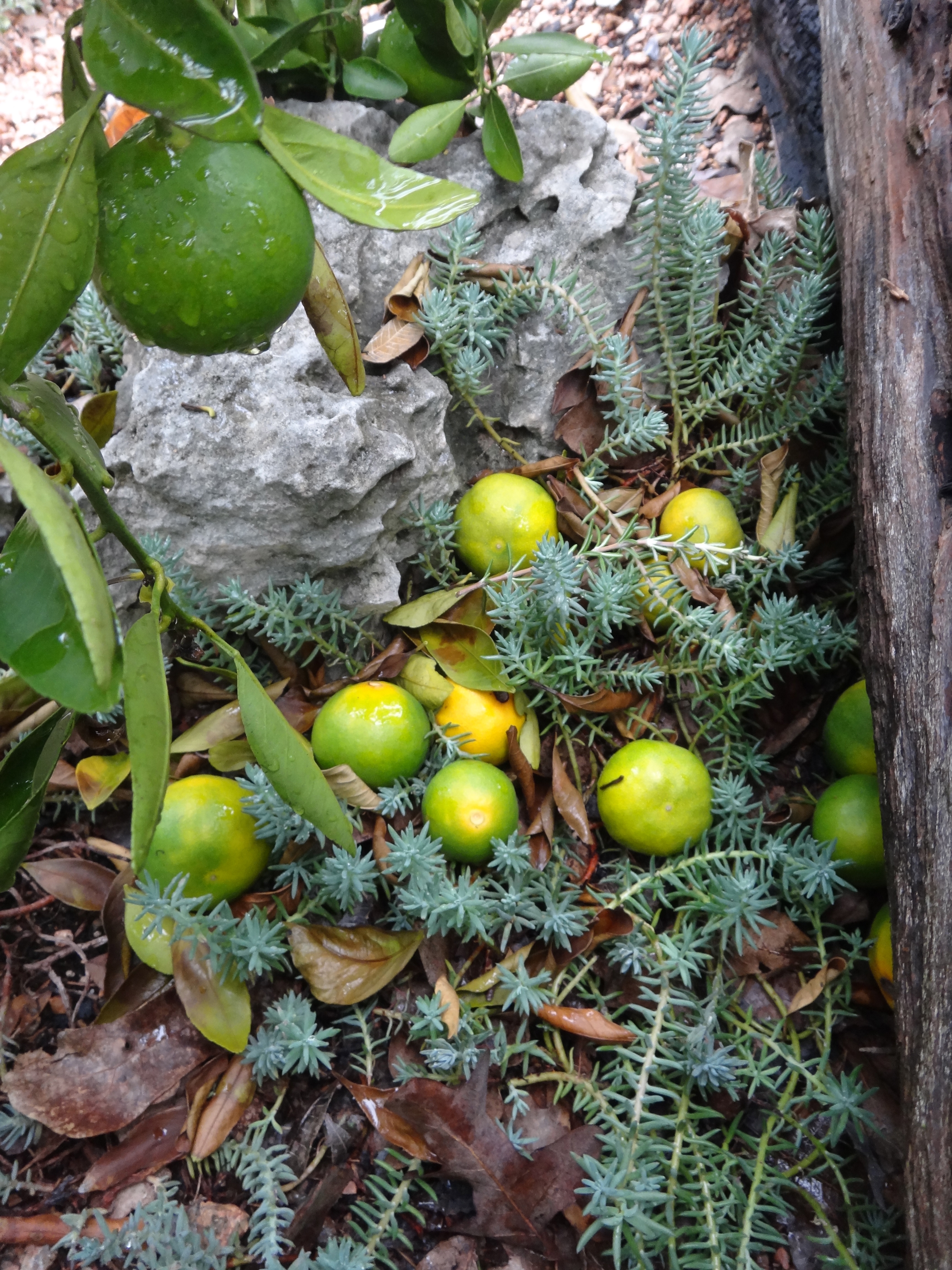 As a last ditch attempt to stay alive this satsuma has started to prematurely drop fruit, hopefully the rain will turn this process around.