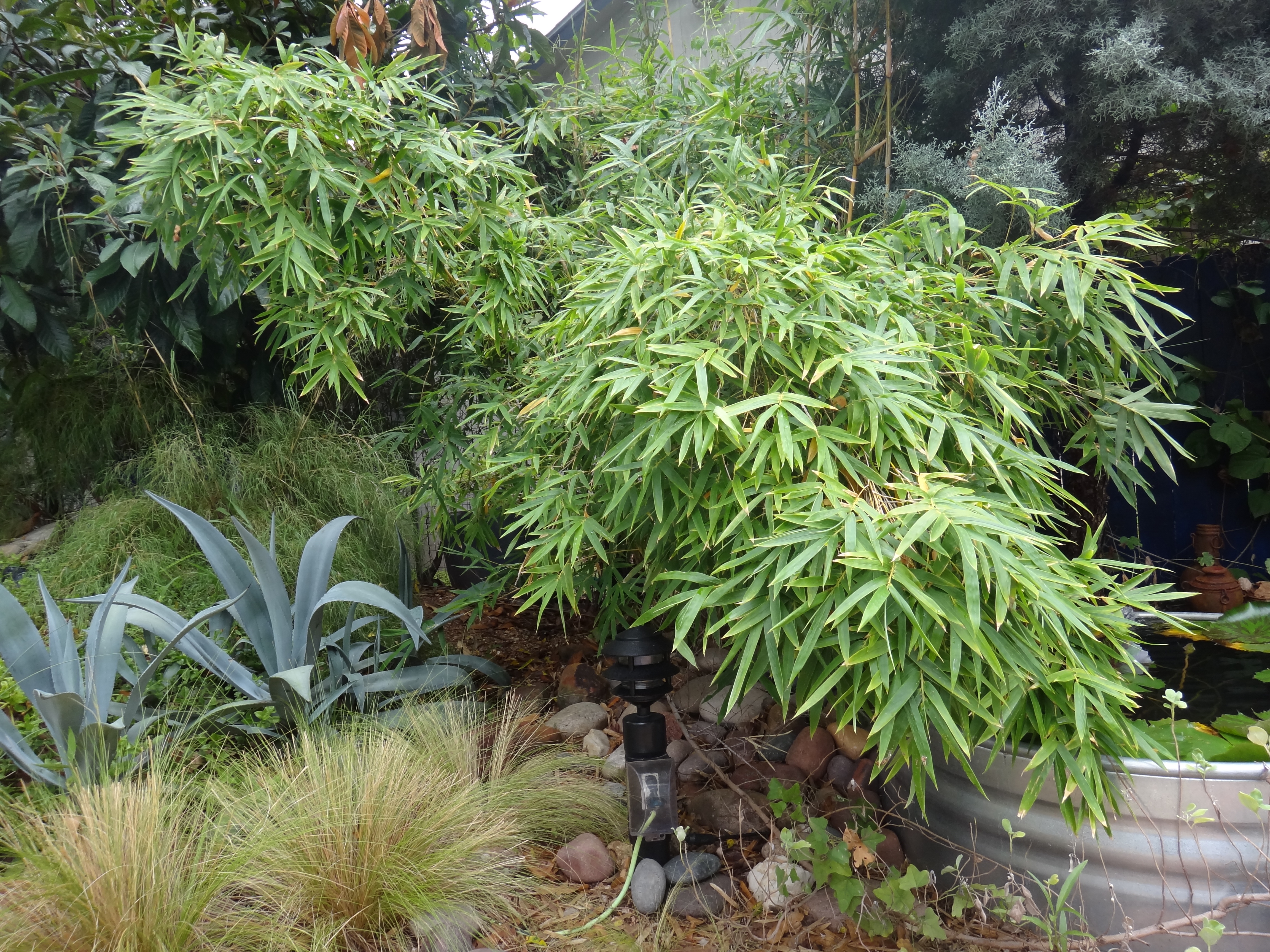Rain always causes this Alphonse Karr bamboo to lean and roll, a great clumping privacy bamboo.