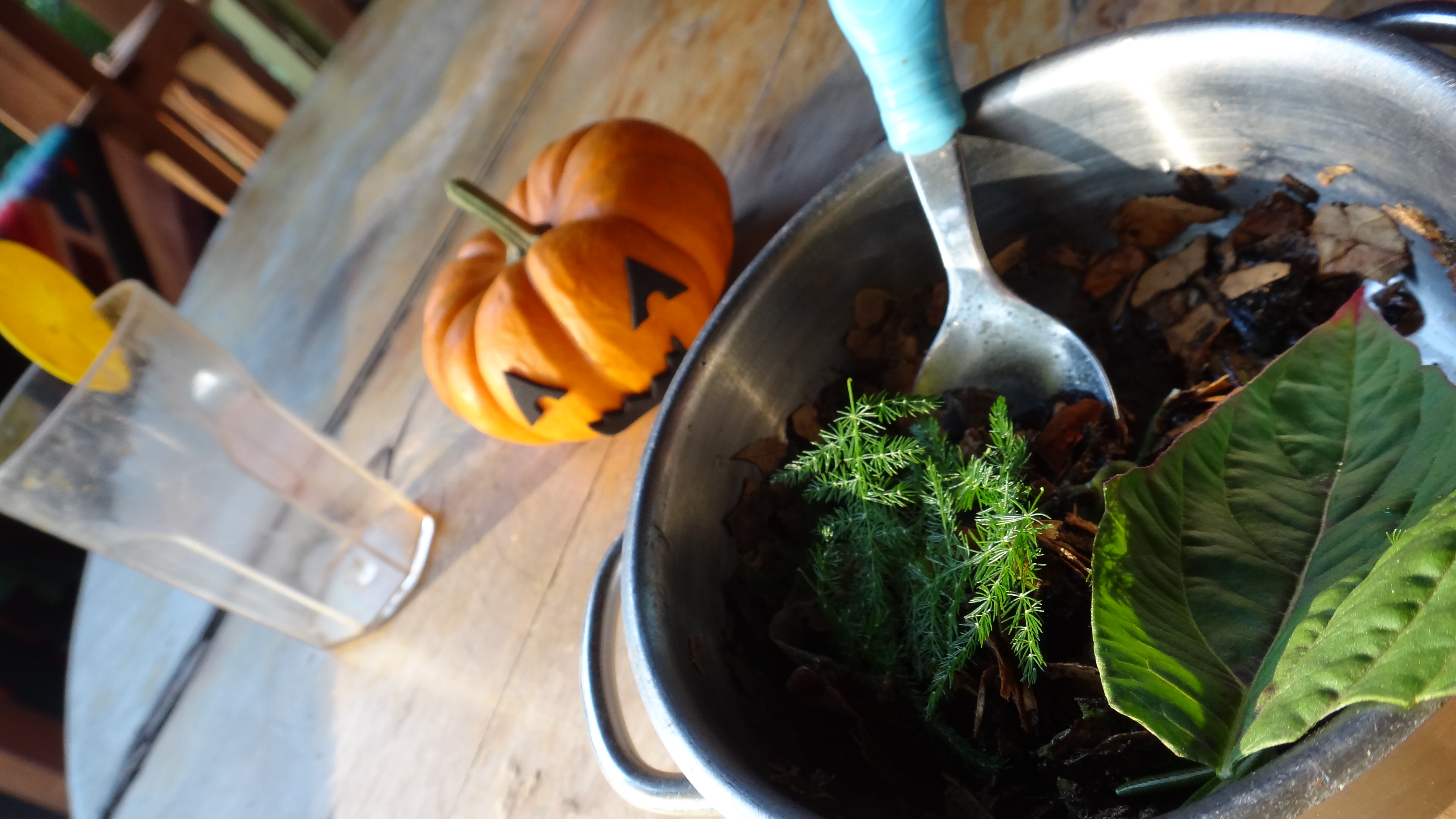 and in no time a hearty fall “broth” was presented, wait, is that plumosa fern in there as a garnish?