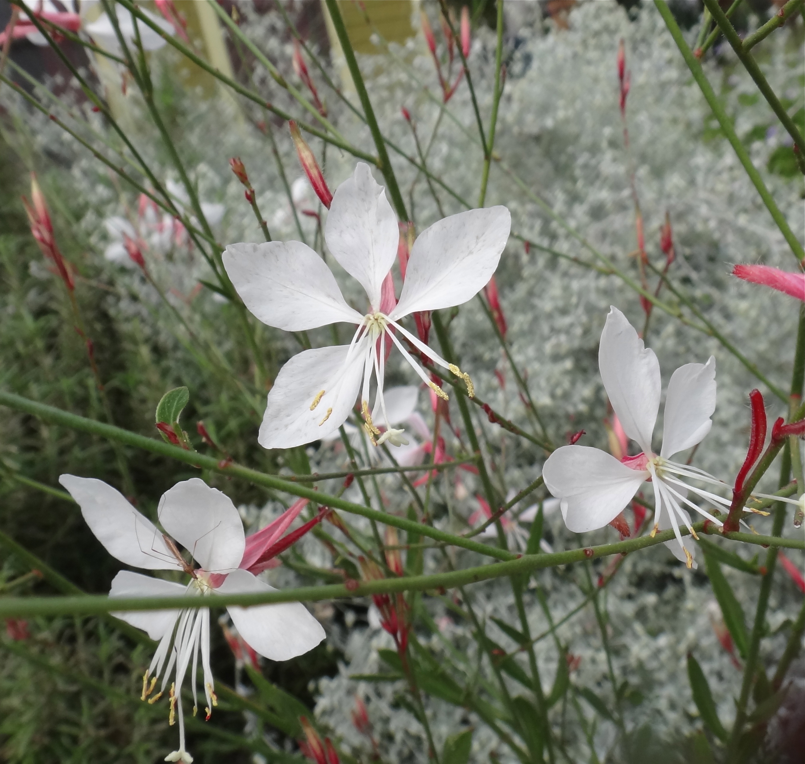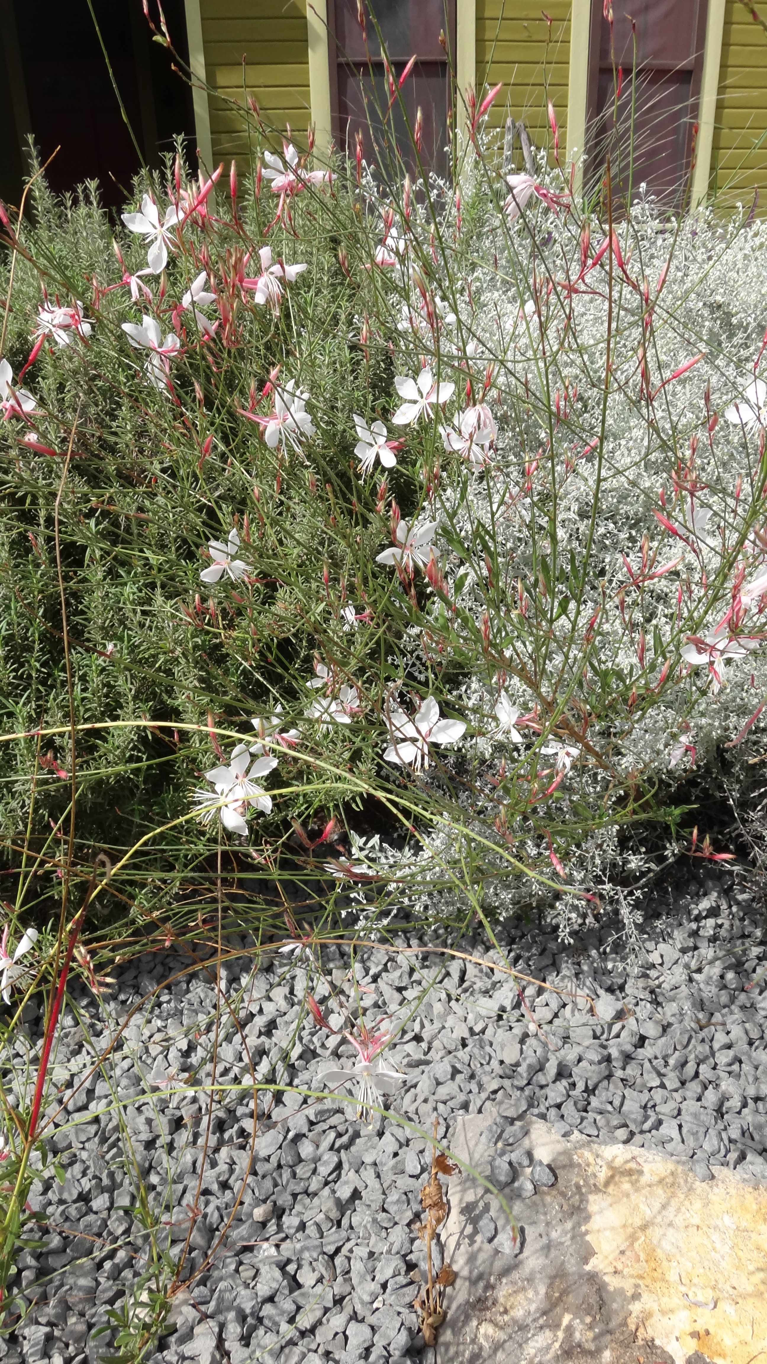 This plant is also known as whirling butterflies, describing how the flower heads dart and move around on long and slender stems. Planted into a sharp soil this plant shows up every year without fail and has even spread to a couple of new locations across the sidewalk.