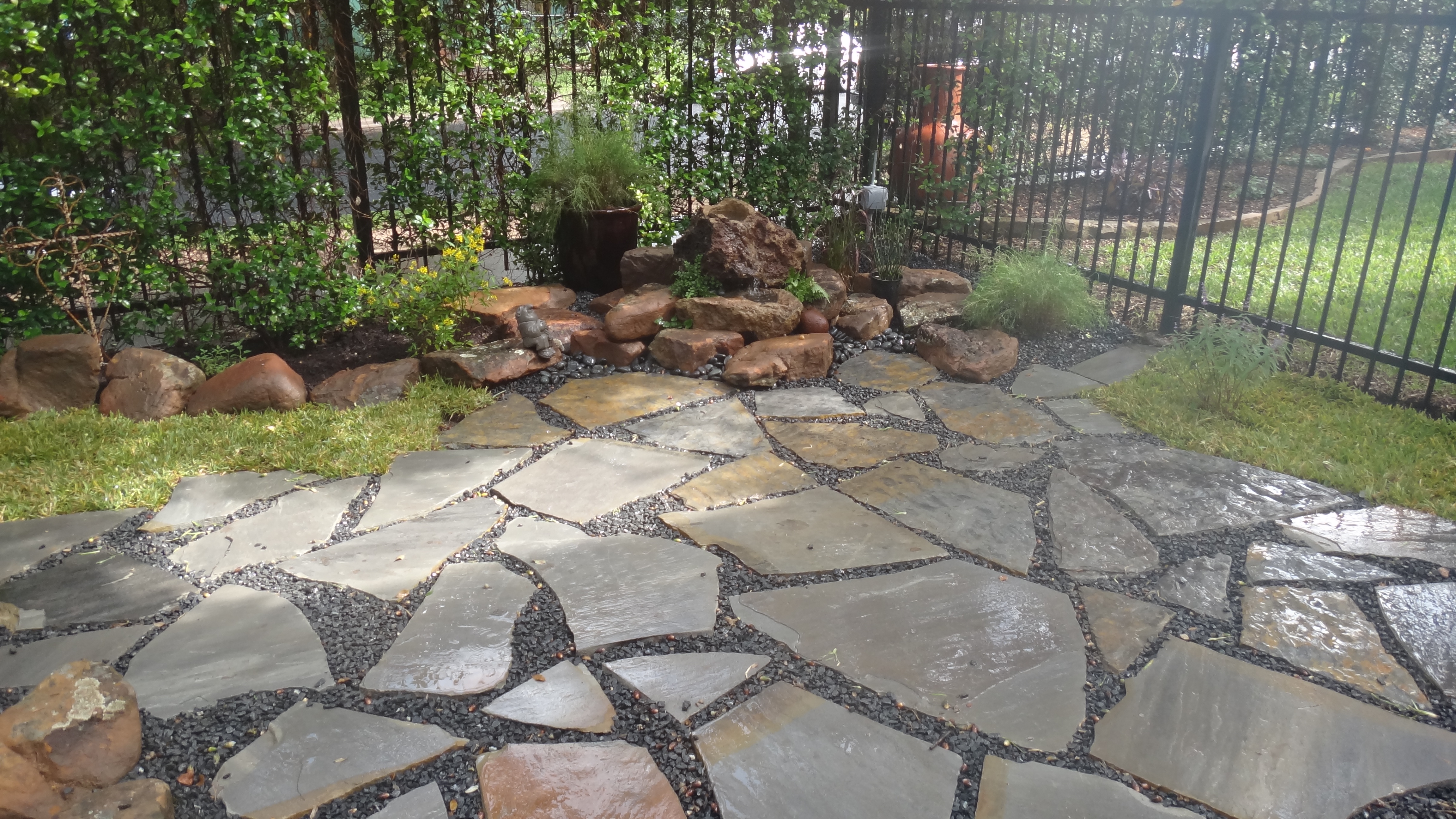 Love the water feature you did for your client. The patch is looking pretty too. This weekend we are getting the first real rain for at least 6 months so next week my plants should start looking spruced.