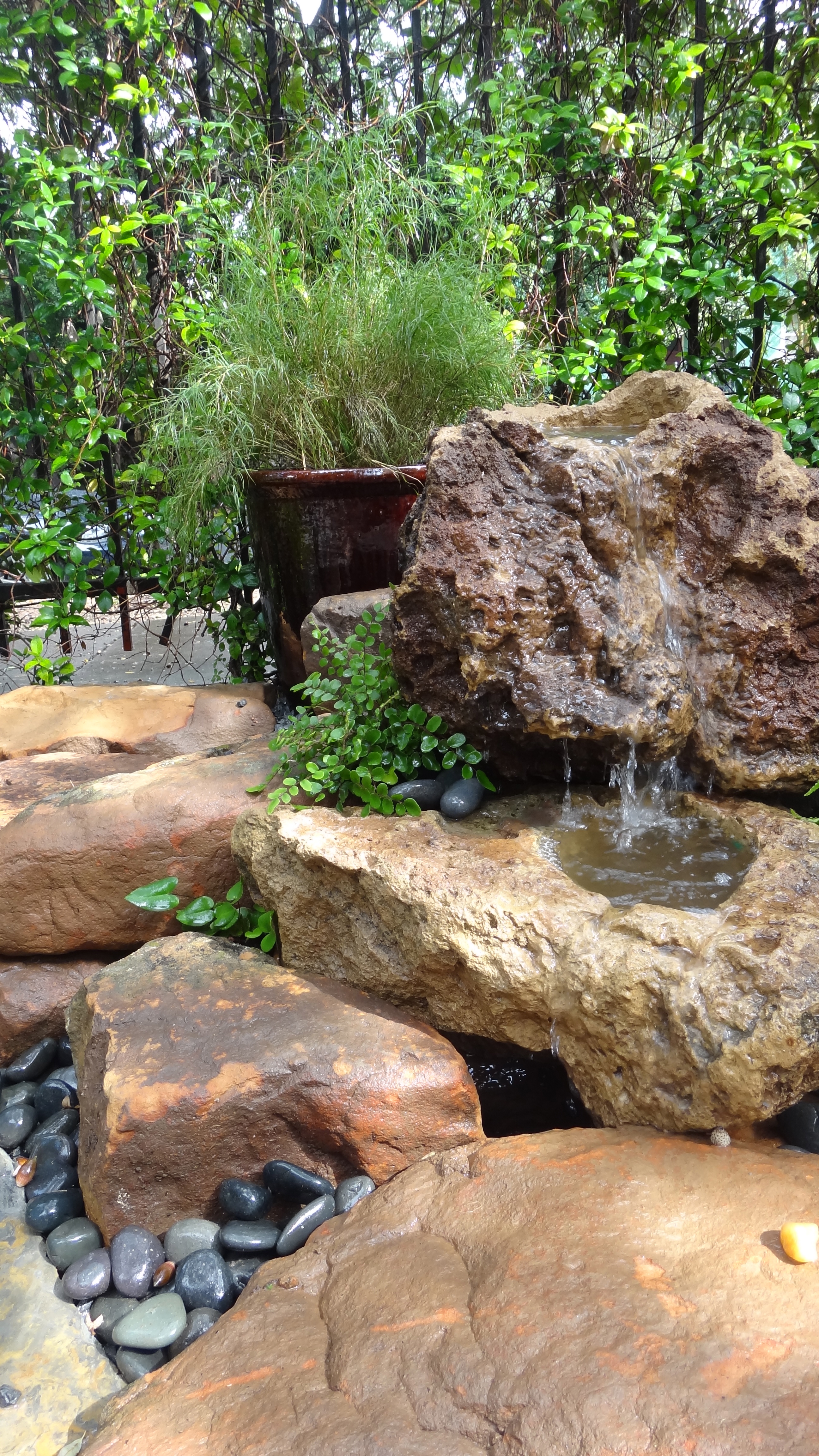 Quite a few hours were spent shuffling moss boulders around to get the desired two-tier wells to flow naturally and to eliminate any splash-off that would deplete the reservoir over time.