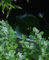 What sort of merry monster is living in that water feature behind the Beach Vitex?…looks like big, glassy eyes peeking over the rim…(play spooky music now)